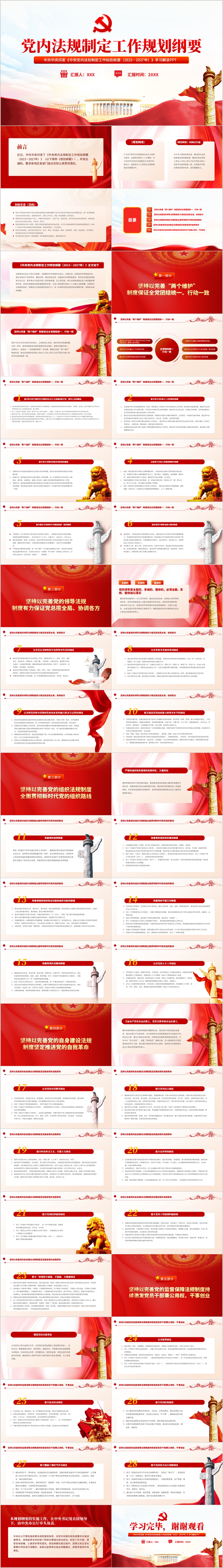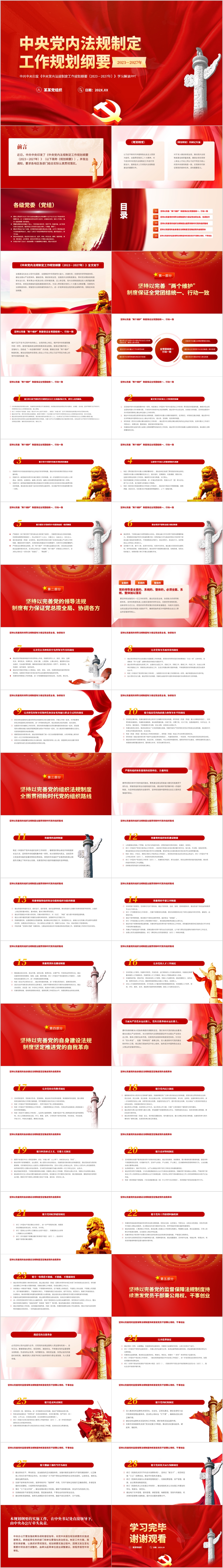 中央党内法规制定工作规划纲要(2023-2027年)党课PPT模板(内含WORD演讲稿)