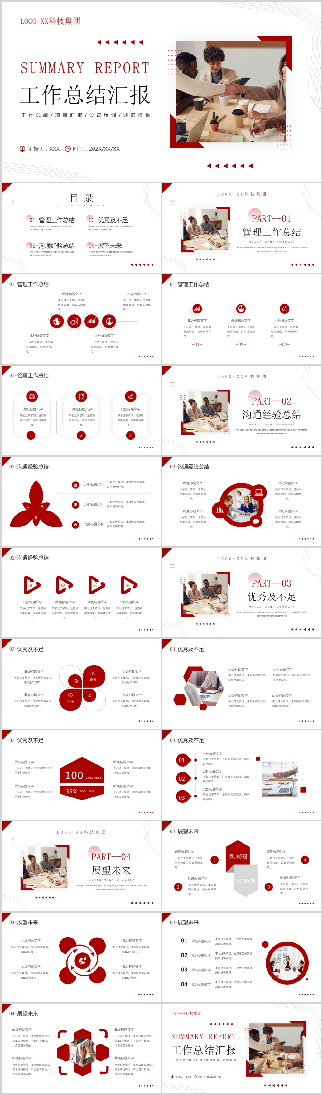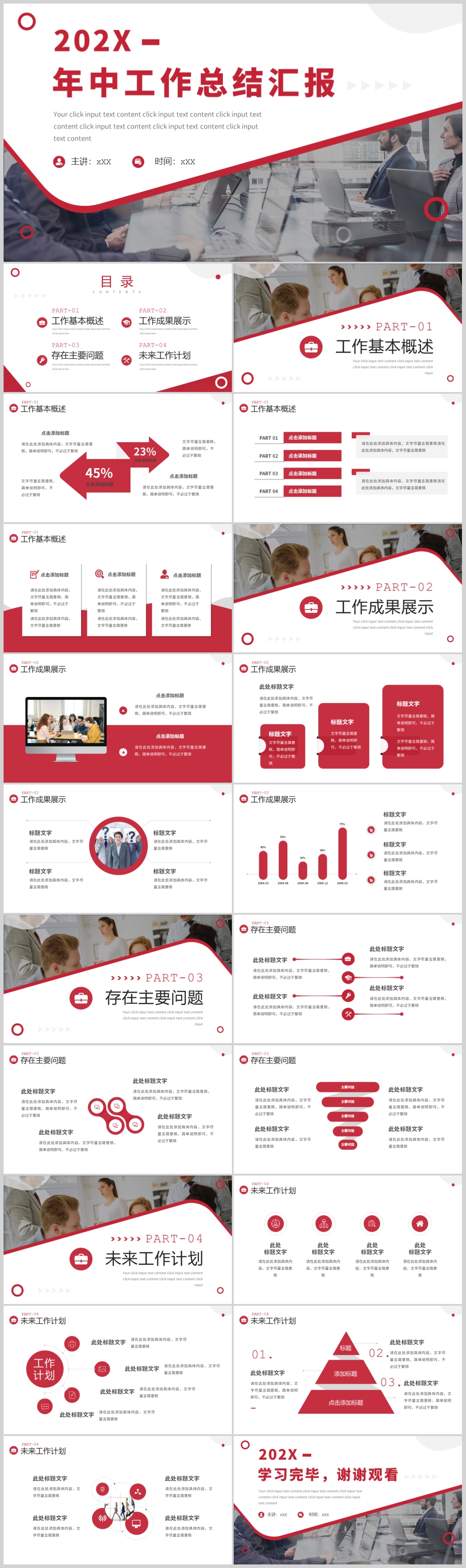 2022年红色中工作总结汇报工作概述策划PPT模板