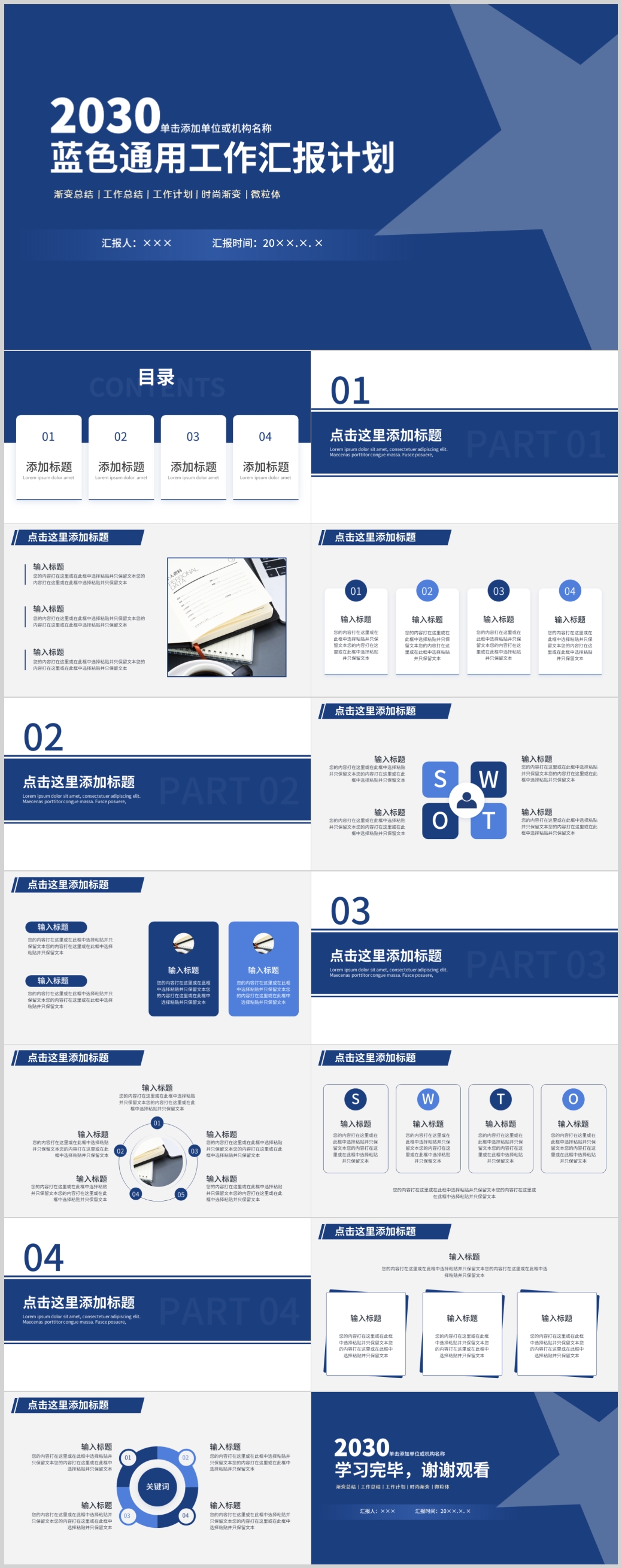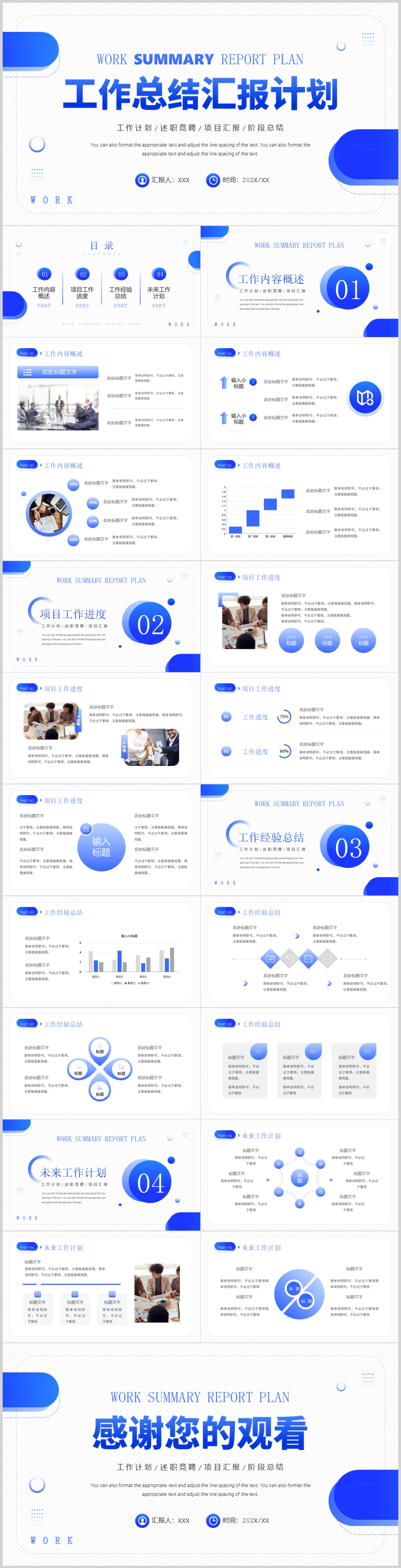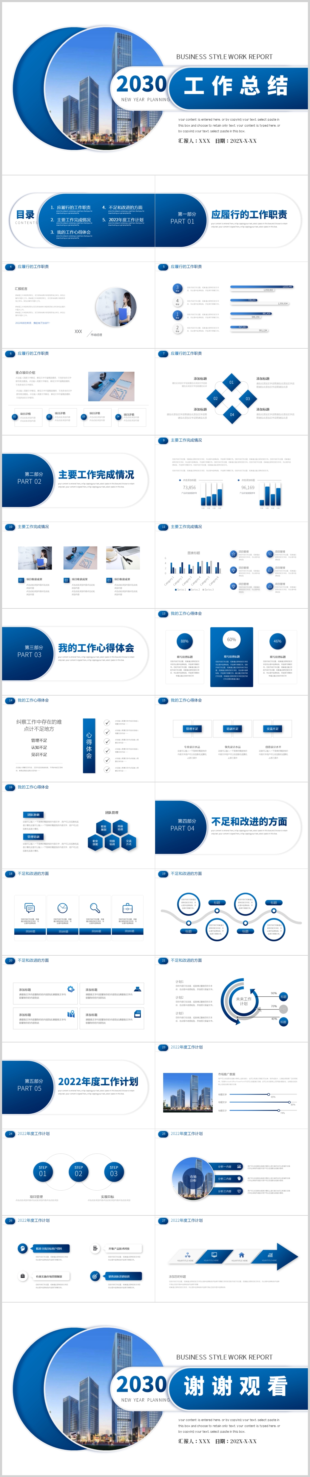 2022年蓝色商务风工作总结汇报计划PPT模板