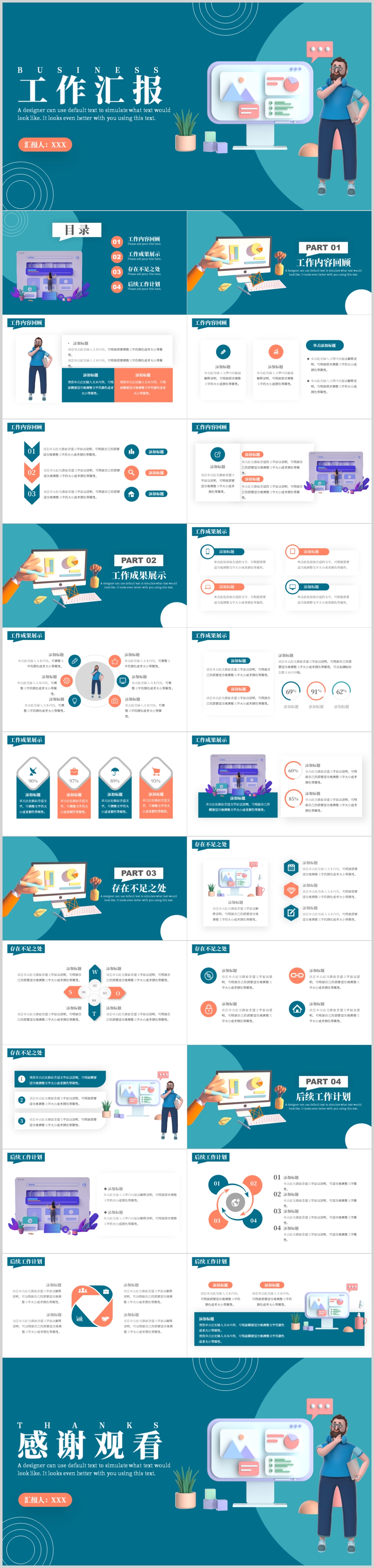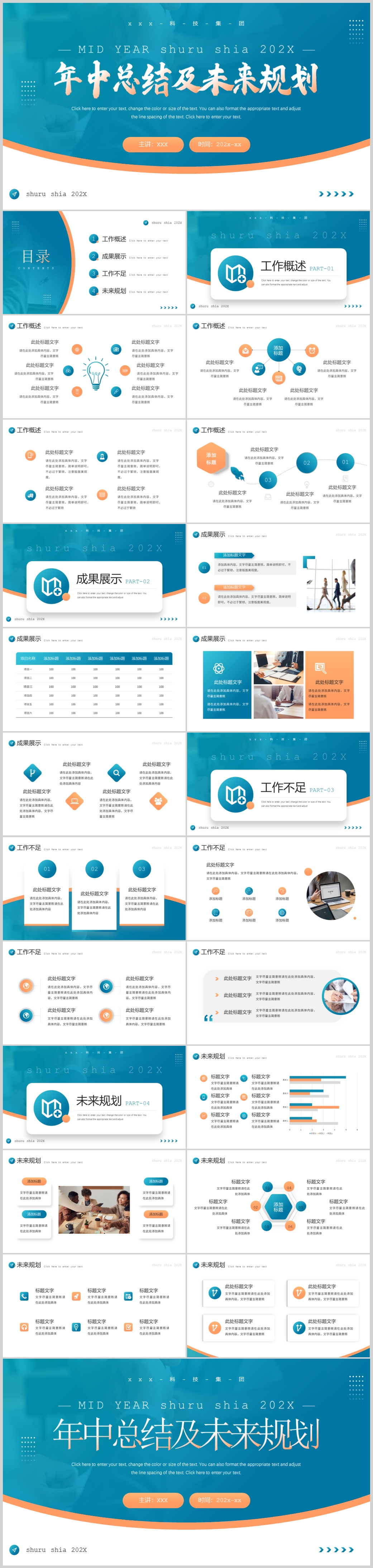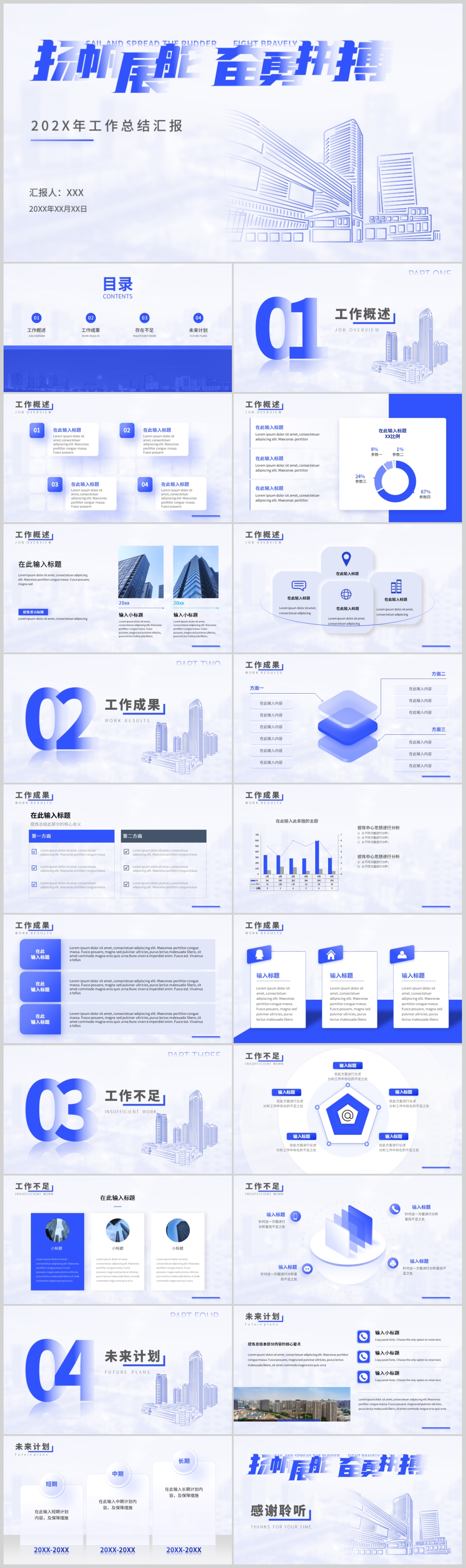 2022年蓝色商务风工作总结汇报计划PPT模板