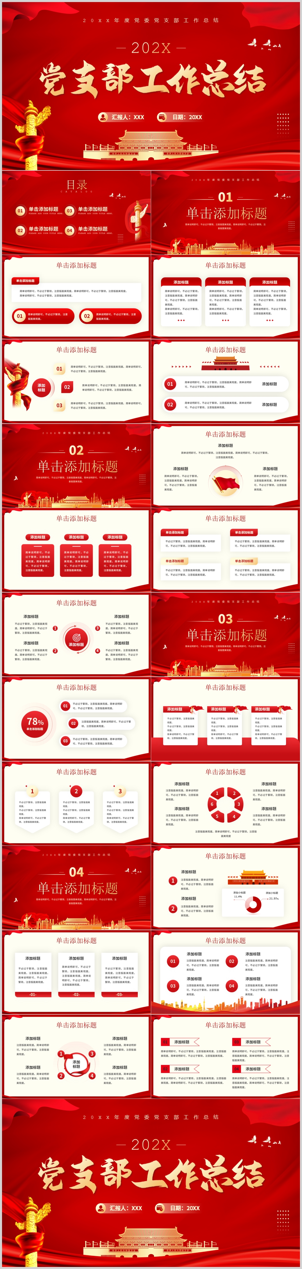 红色喜迎二十大基层党组织党支部工作总结党建述职报告PPT模板