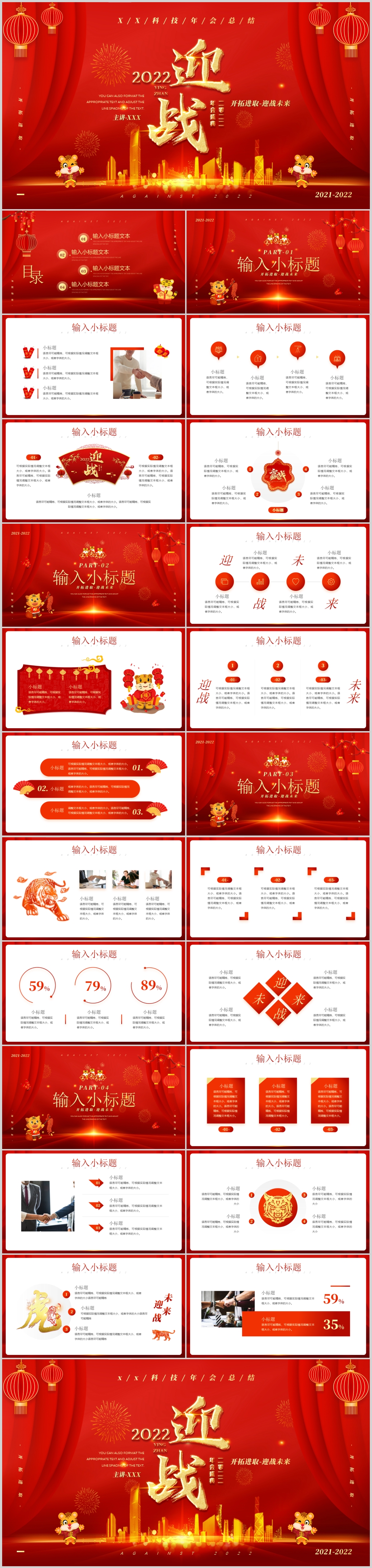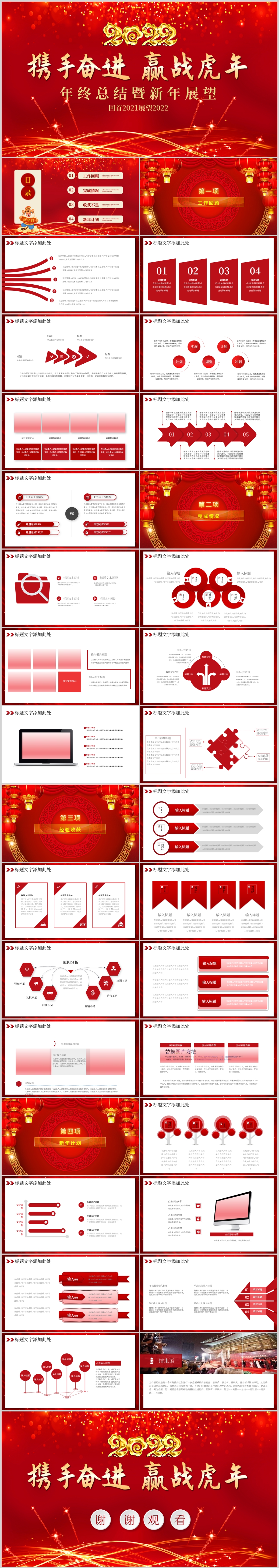 2022红色赢战虎年年终总结暨新年工作计划ppt模板