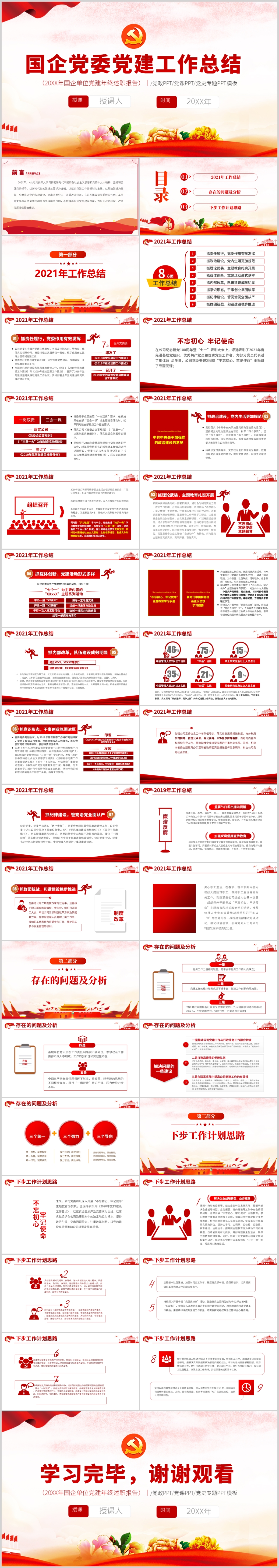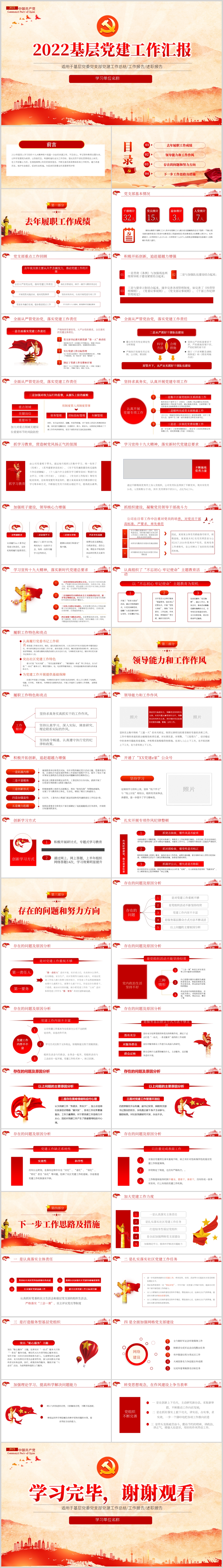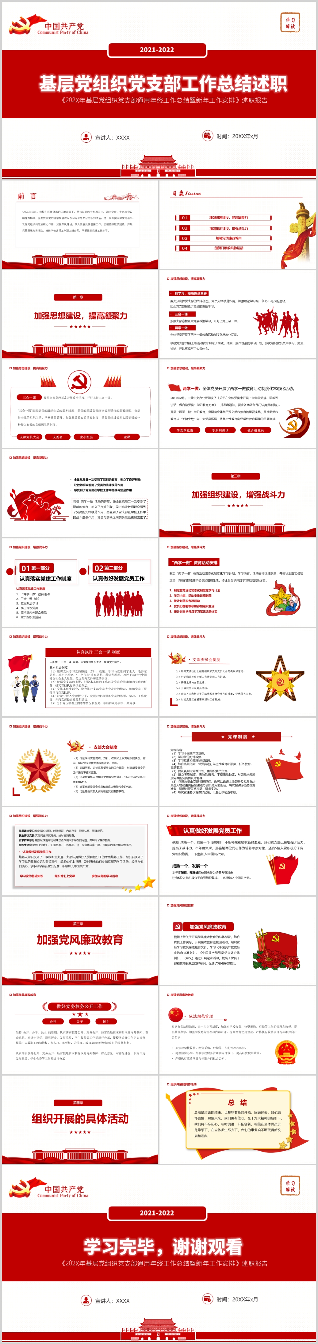 2021年党建工作总结暨2022年工作计划PPT模板(内含WORD演讲稿)