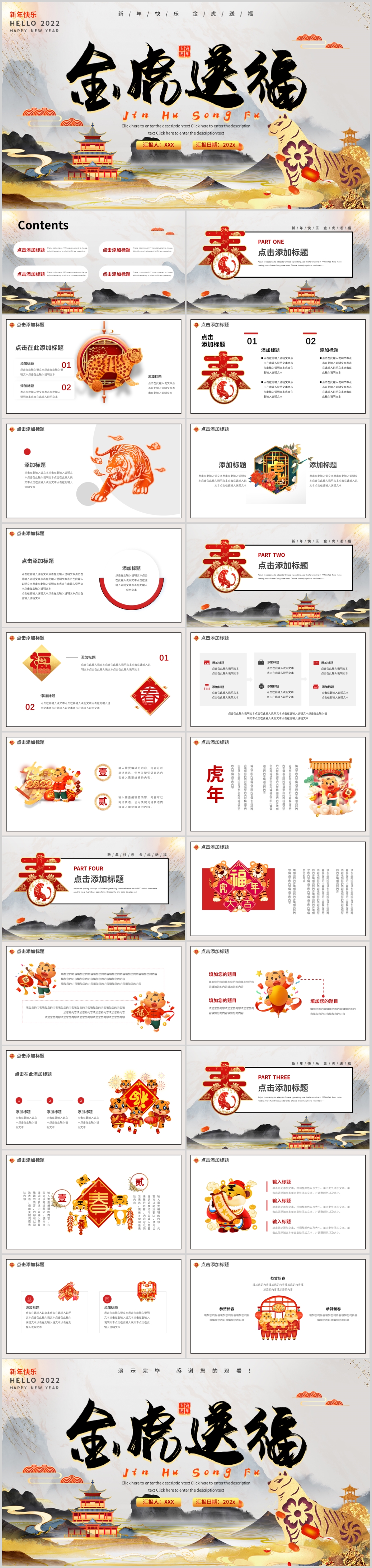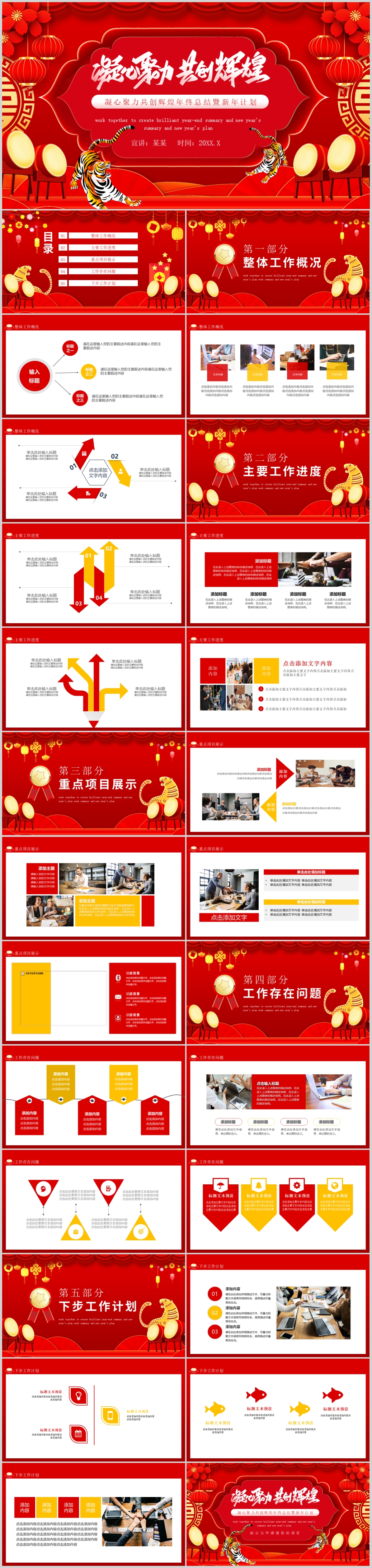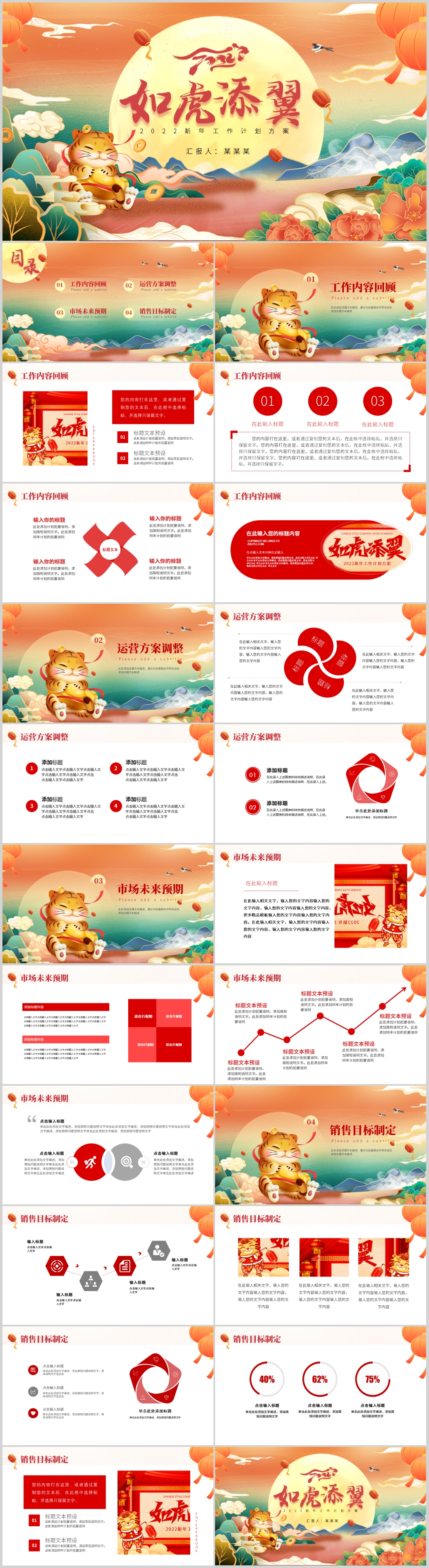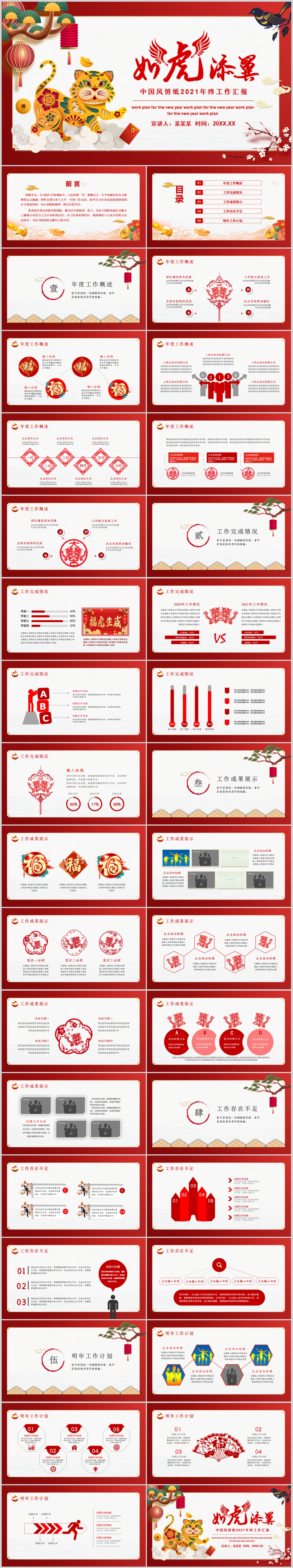 2022虎年红色喜庆新年计划年终工作总结ppt模板