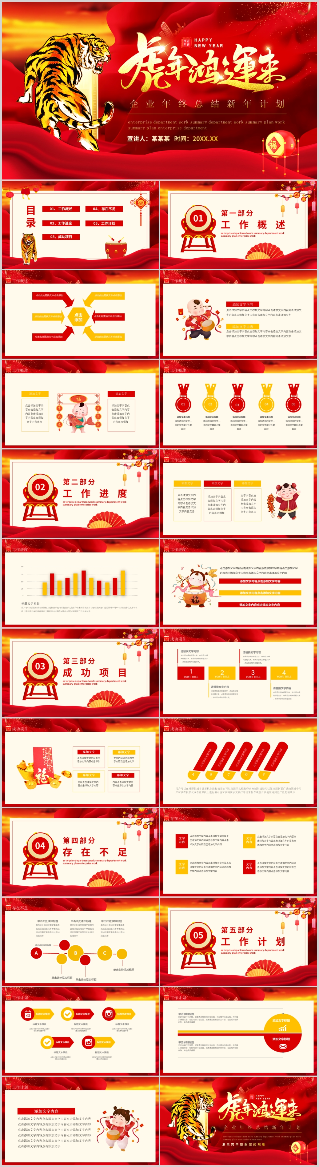 2022年红色虎年企业年终总结新年计划PPT模板