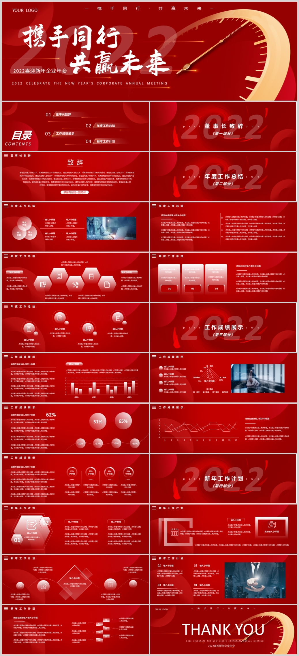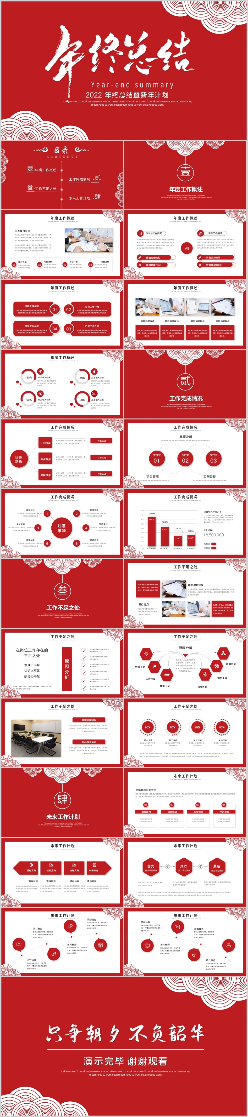 红色传统喜庆2022年终工作总结PPT模板