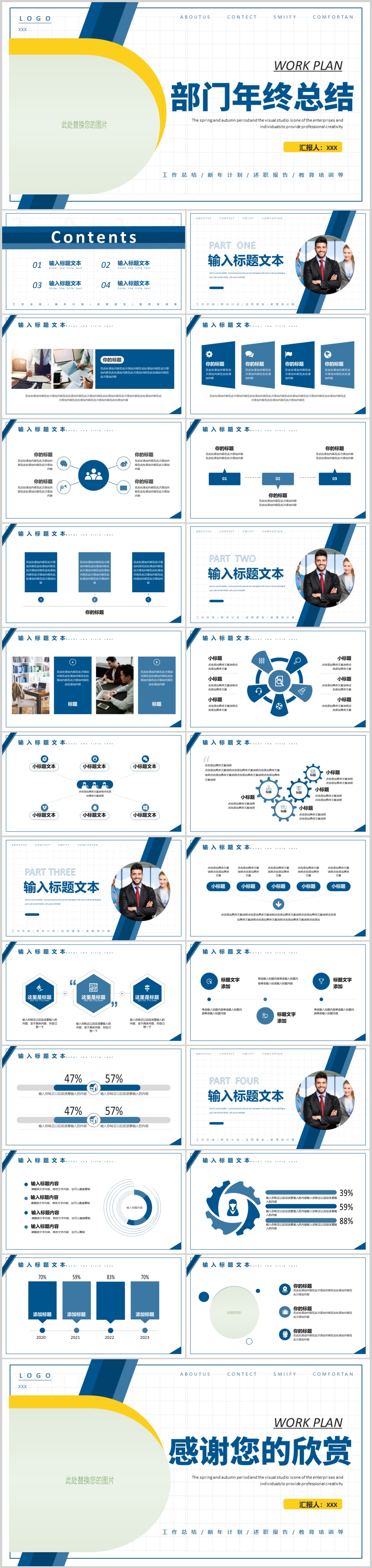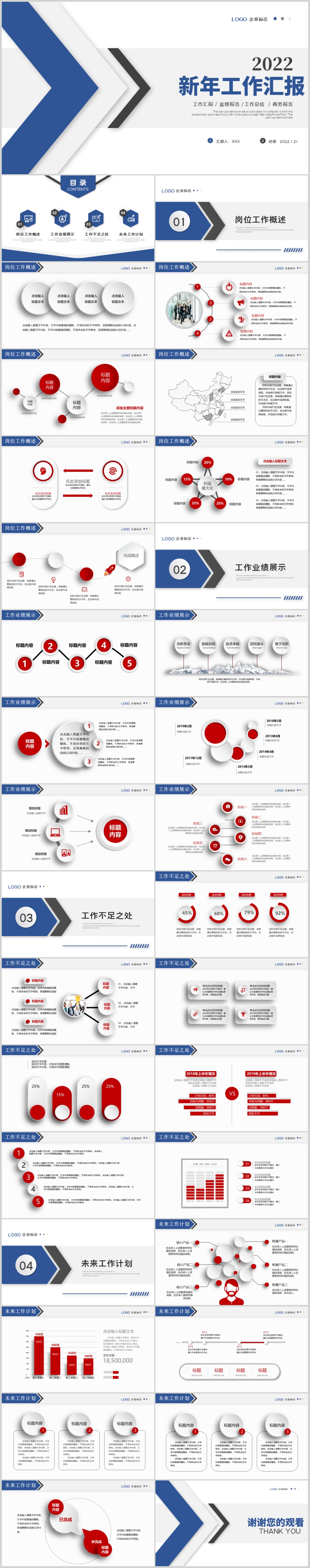 2022年蓝商务简约年终总结工作汇报计划ppt模板