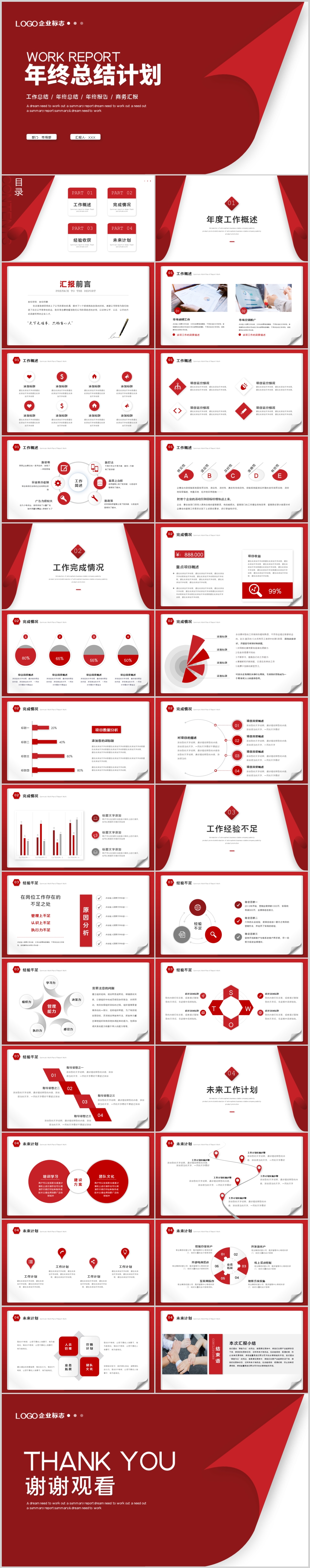 红色2022年宽屏大气商务工作汇报述职报告年终总结PPT模板