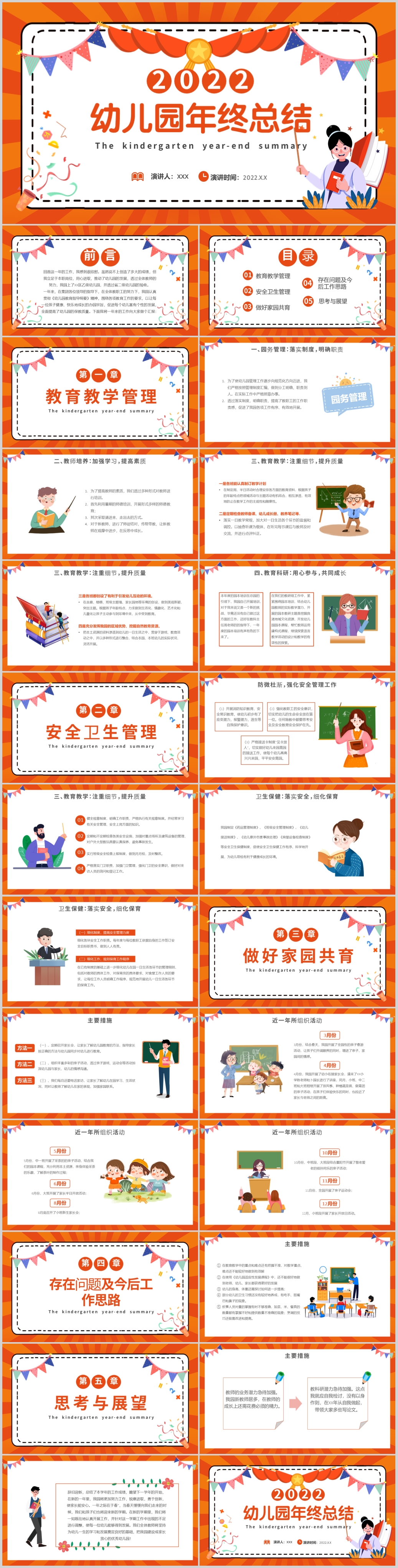 卡通2022中小学生幼儿园年终工作总结新年计划PPT模板
