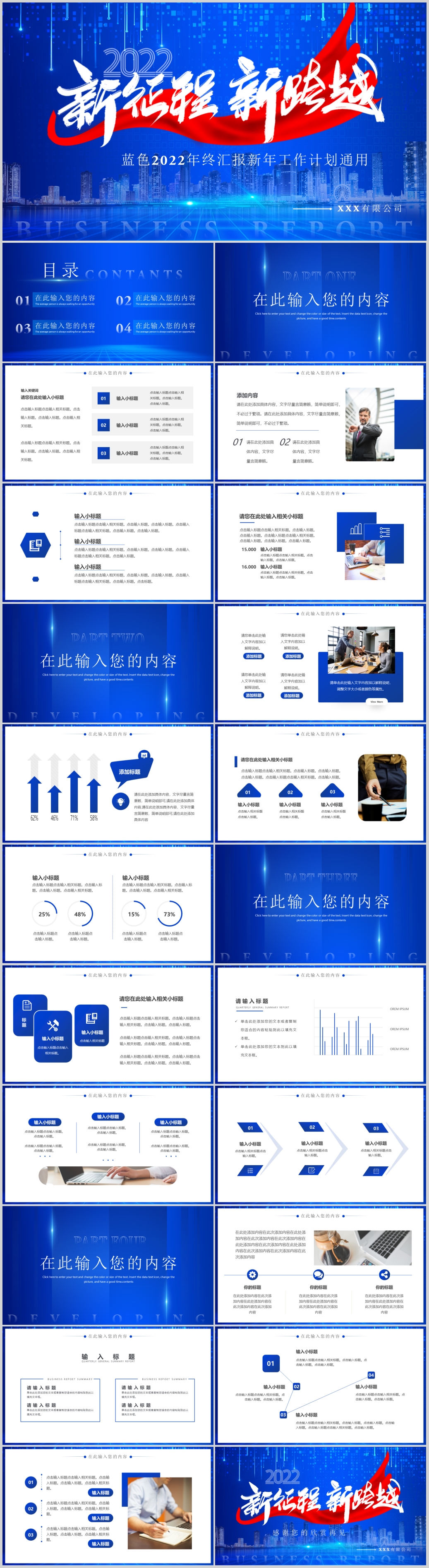 2022l蓝色新征程励志简约商务风年终总结汇报计划ppt模板