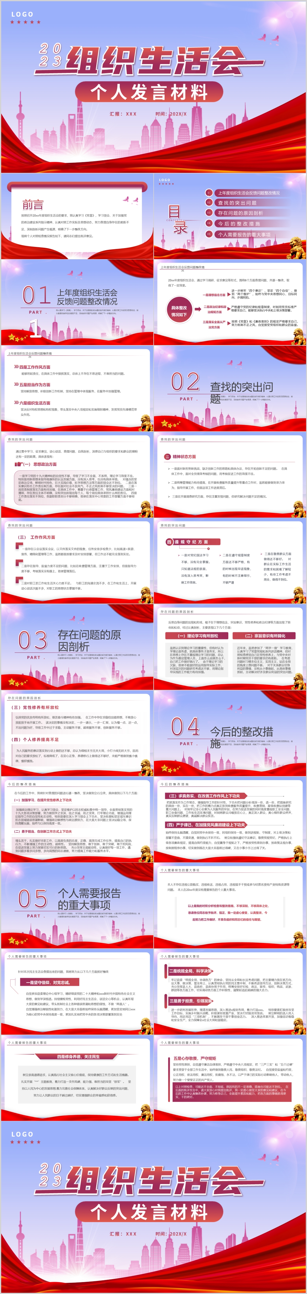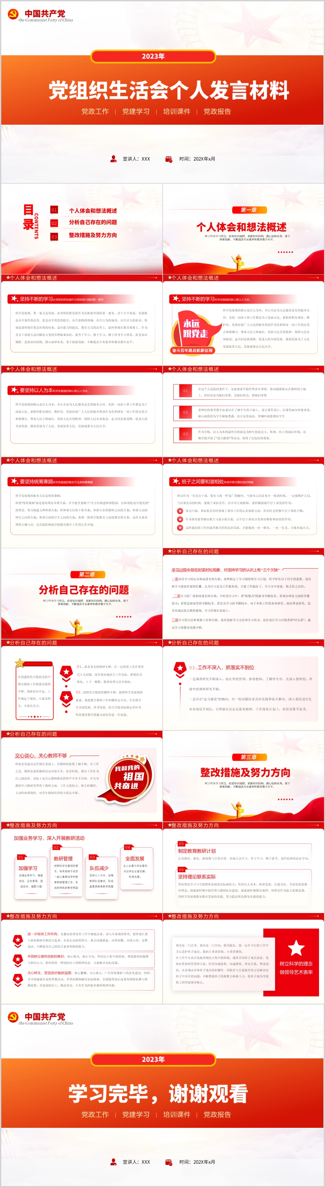 2023红色组织生活会个人对照检查材料专题党课ppt模板