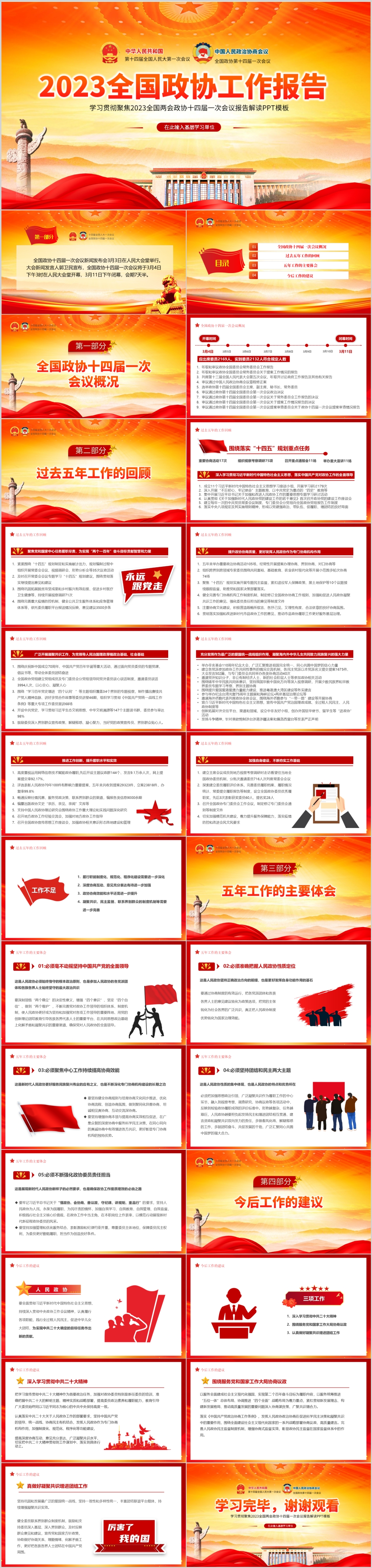 红色2023两会全国政协工作报告学习解读党课PPT模板(内含WORD演讲稿)