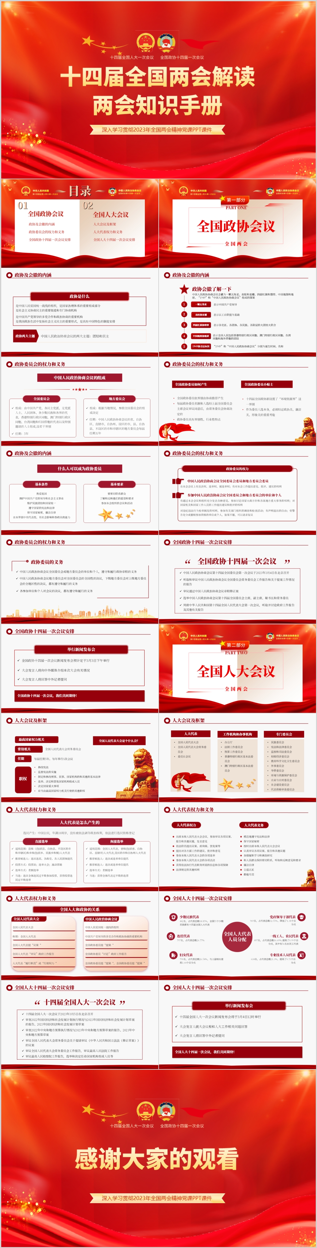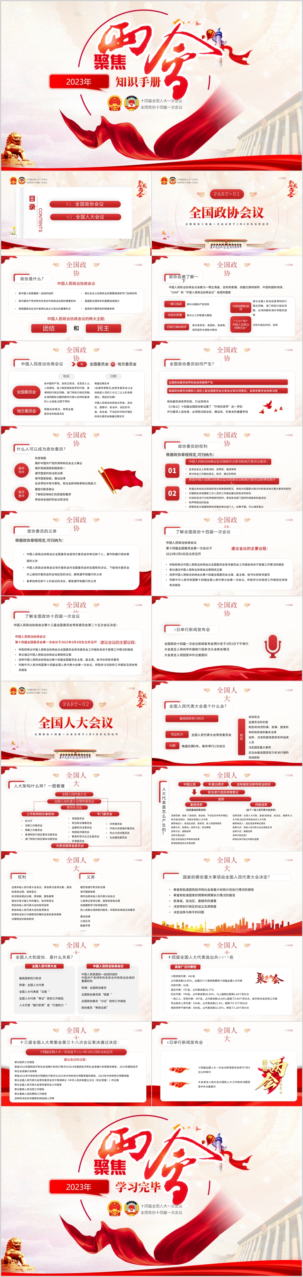 学习2023全国两会什么两会知识手册两会精神专题党课PPT模板(内含WORD演讲稿)
