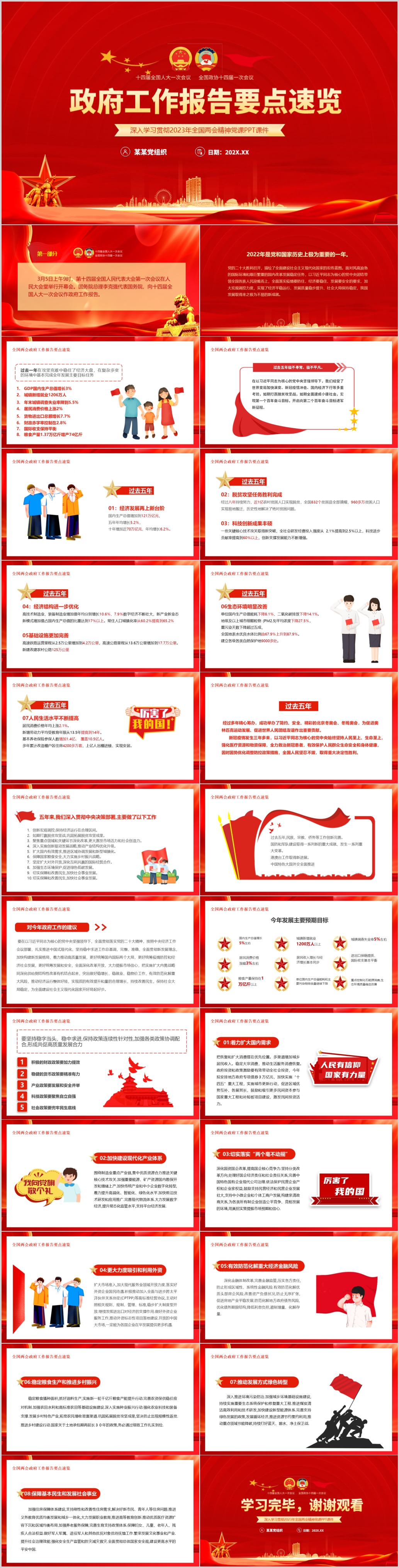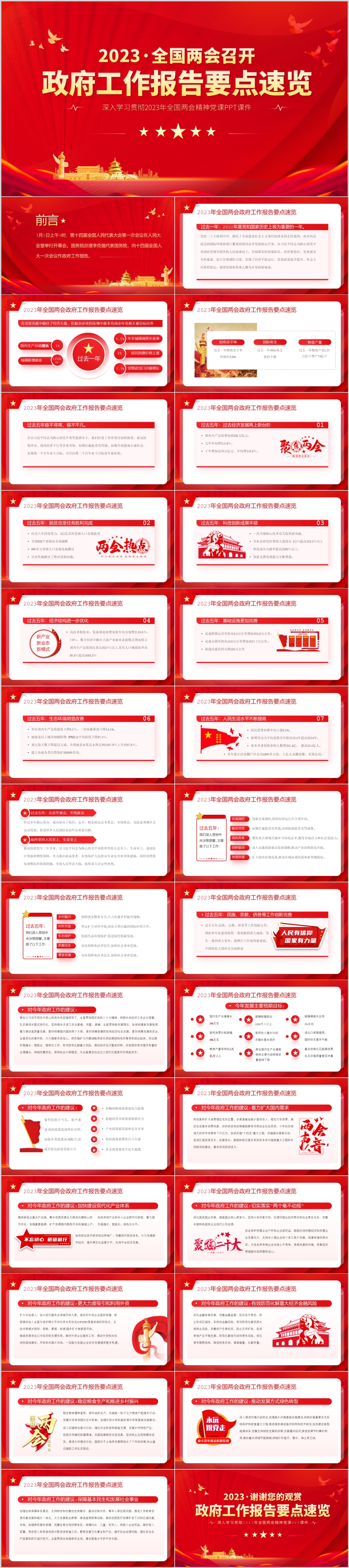 2023全国两会政府工作报告知识要点学习解读党课PPT模板(内含WORD演讲稿)