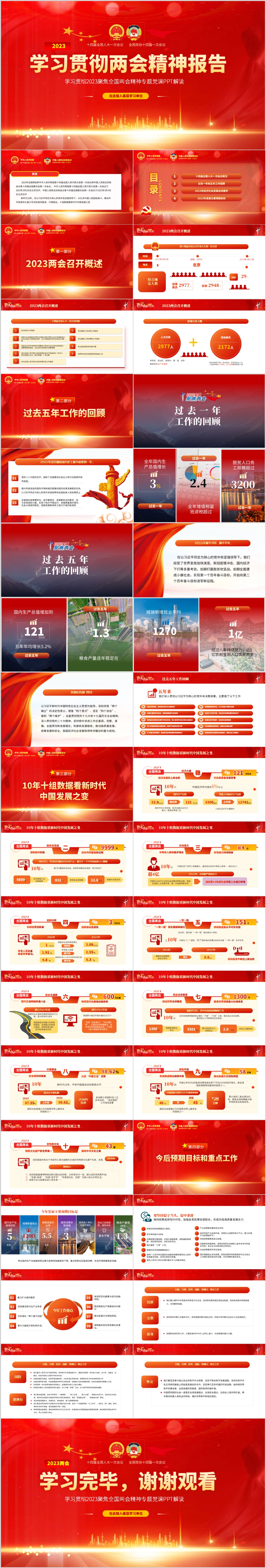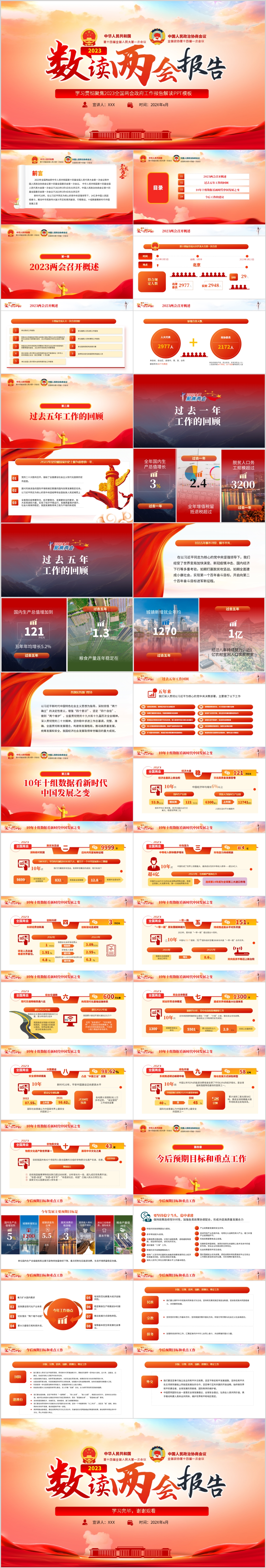 数读2023全国两会精神工作报告学习解读党课PPT模板(内含WORD演讲稿)