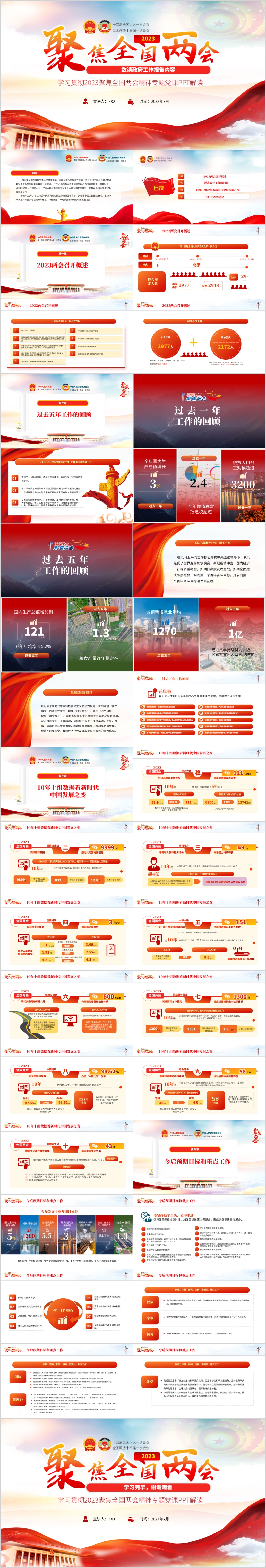 学习聚焦2023全国两会精神政府工作报告数读两会党课ppt模板(内含WORD演讲稿)