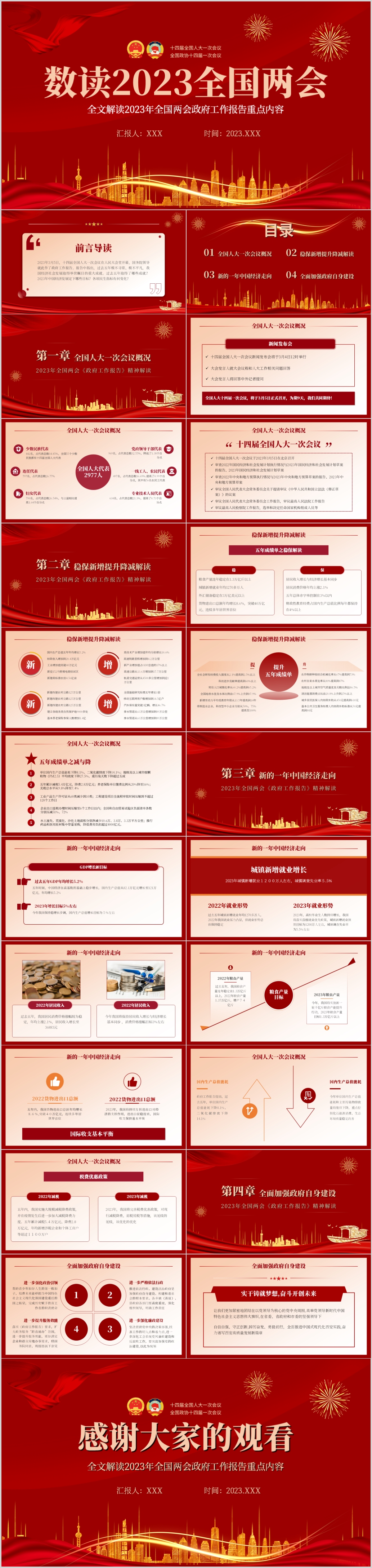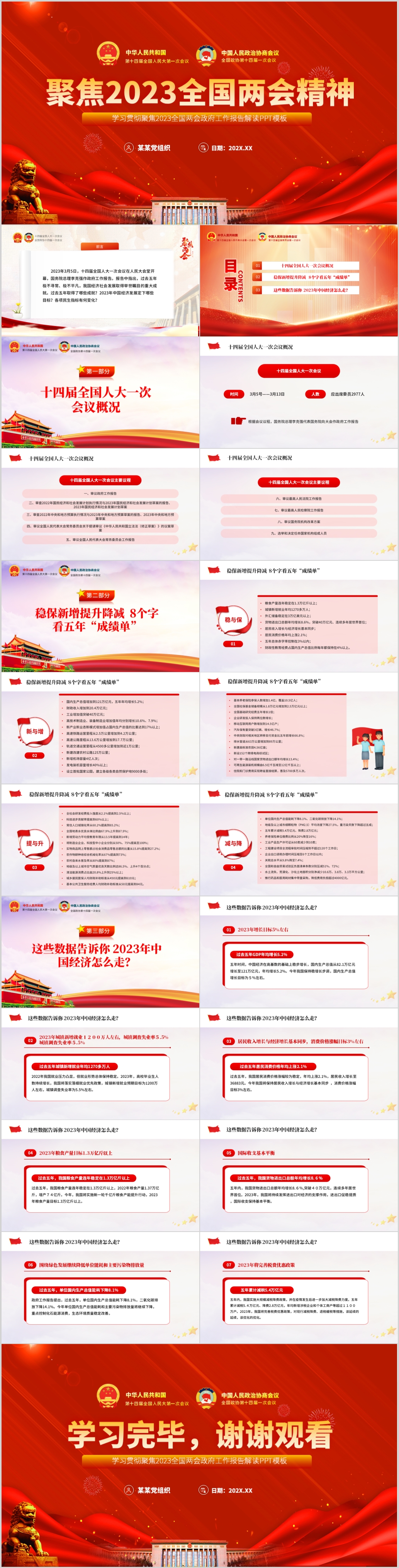 红色大气2023全国两会政府工作报告亮点解读ppt模板