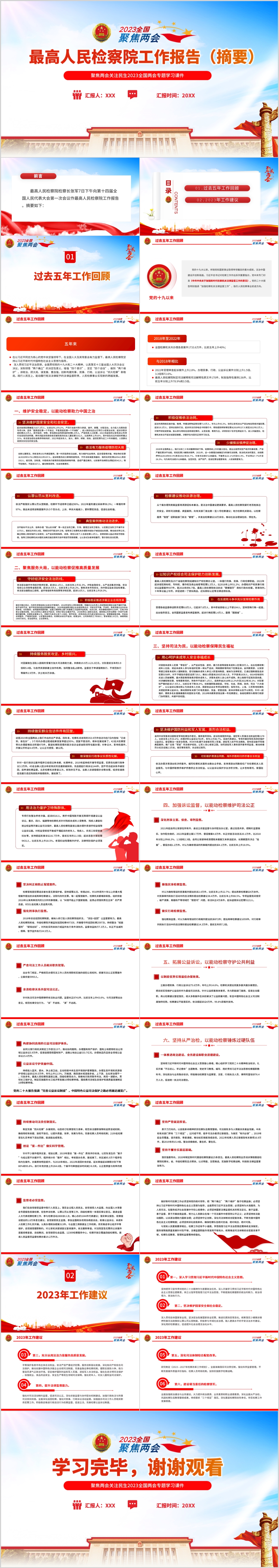 2023聚焦两会最高人民检察院工作报告摘要解读党课ppt模板(内含WORD演讲稿)