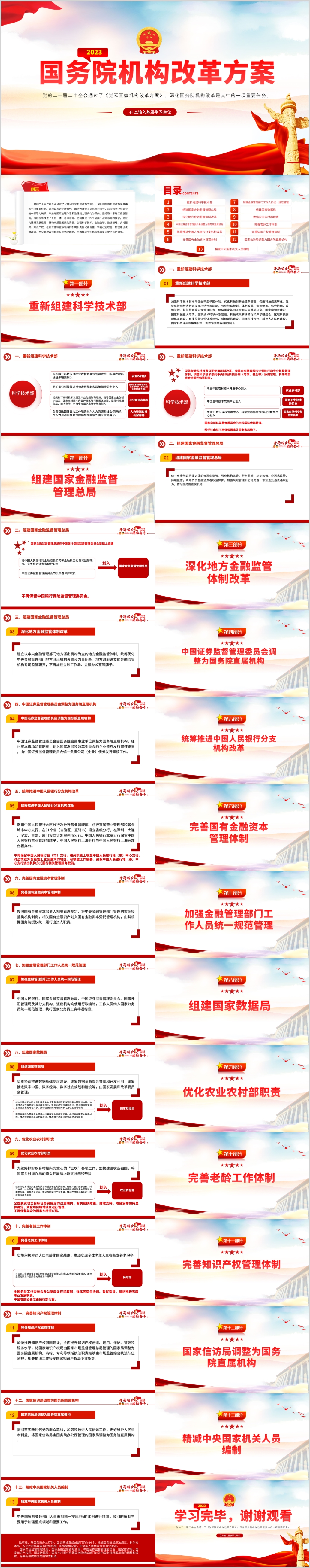 2023年两会速览国务院机构改革学习解读党课PPT模板(内含WORD演讲稿)