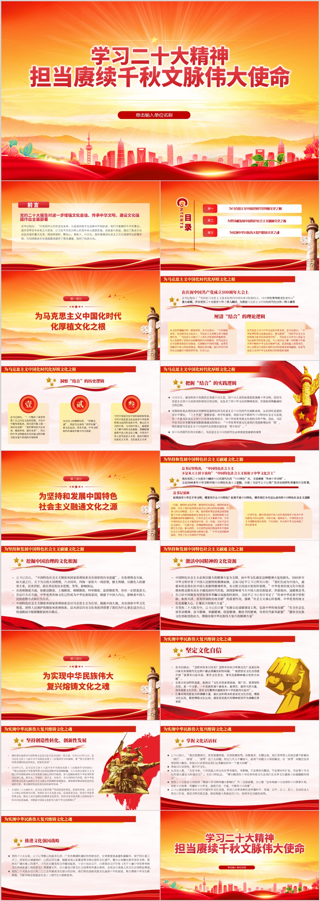 学习二十大精神担当赓续千秋文脉伟大使命党员教育党课ppt模板(内含WORD演讲