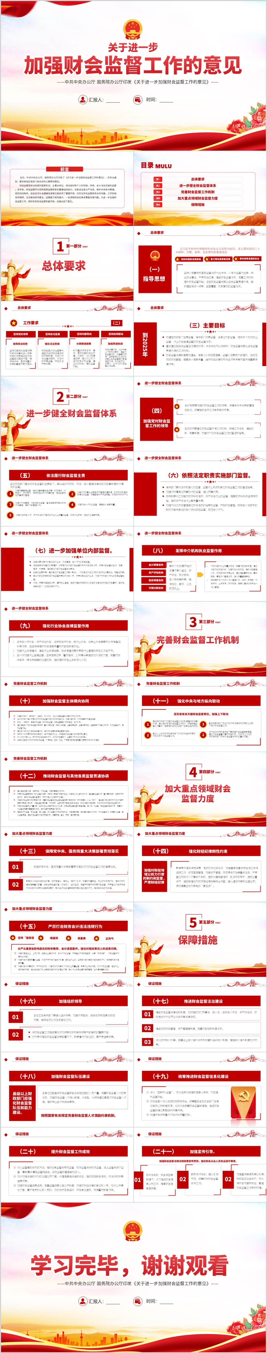 关于进一步加强财会监督工作的意见党课ppt模板(内含WORD演讲稿)