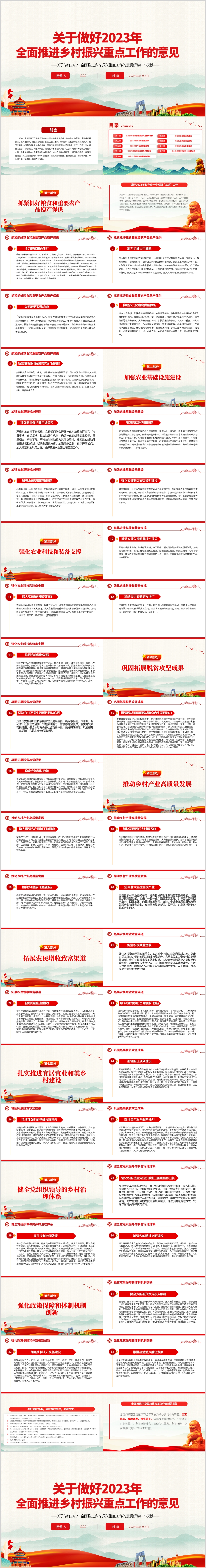 2023中央一号文件全面推进乡村振兴重点工作党课ppt模板(内含WORD演讲稿)