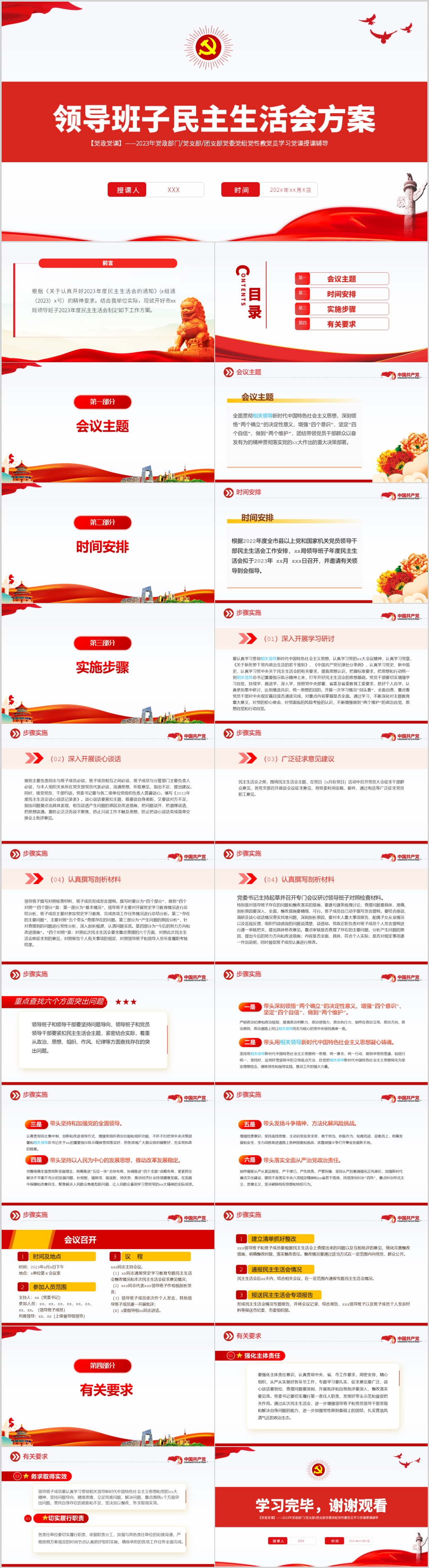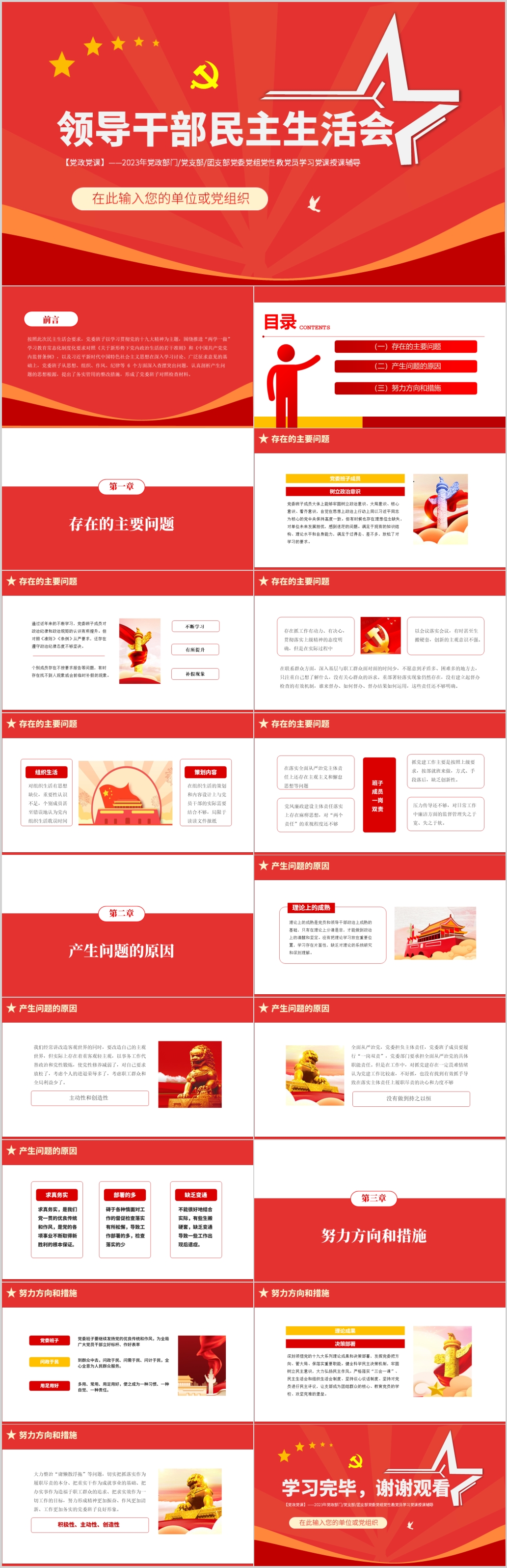 2023年领导班子民主生活会对照检查材料党课ppt模板(内含WORD演讲稿)