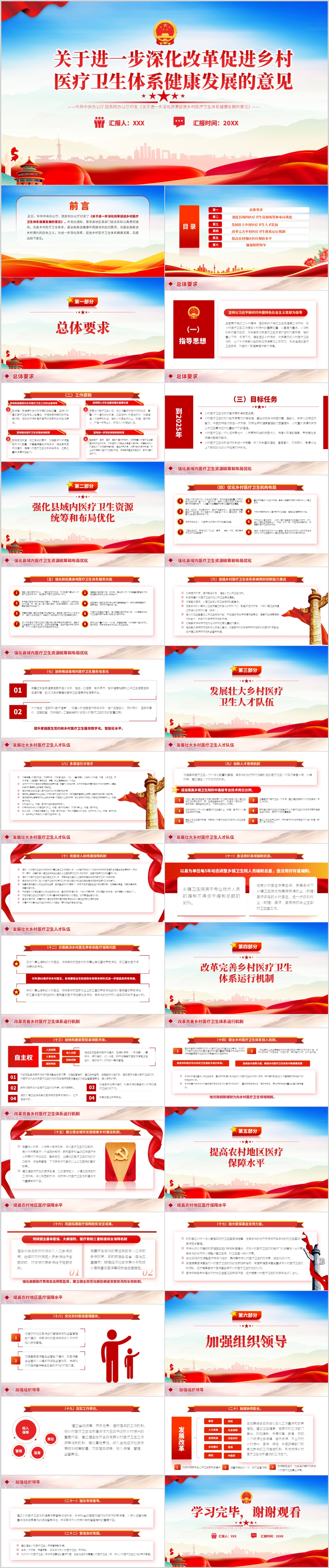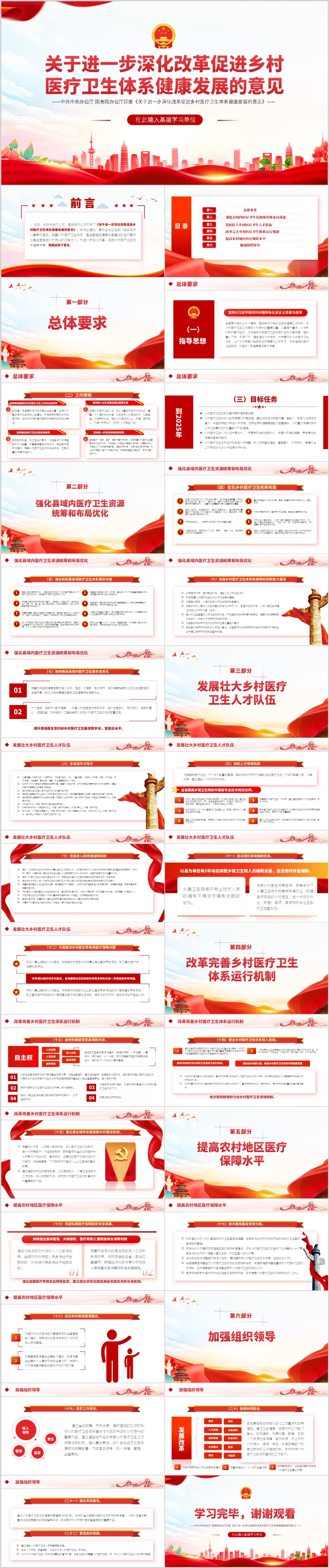 关于进一步深化改革促进乡村医疗卫生体系健康发展的意见党课ppt模板(内含