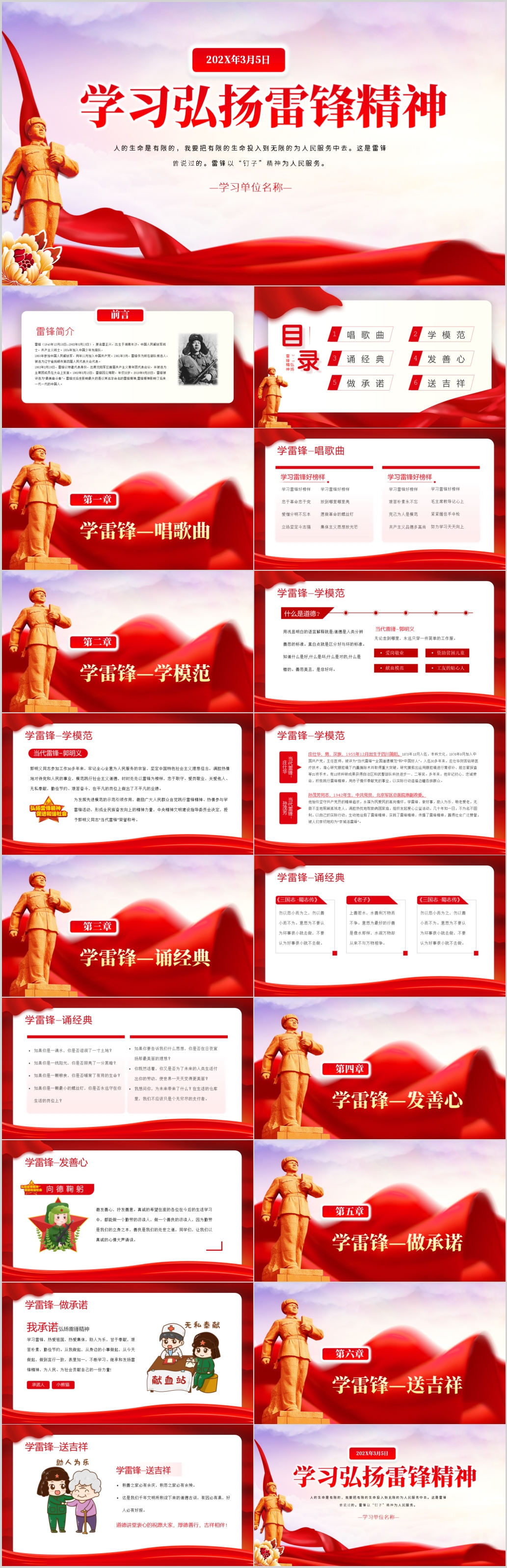 红色3.5学习雷锋好榜样雷锋精神专题党课ppt模板