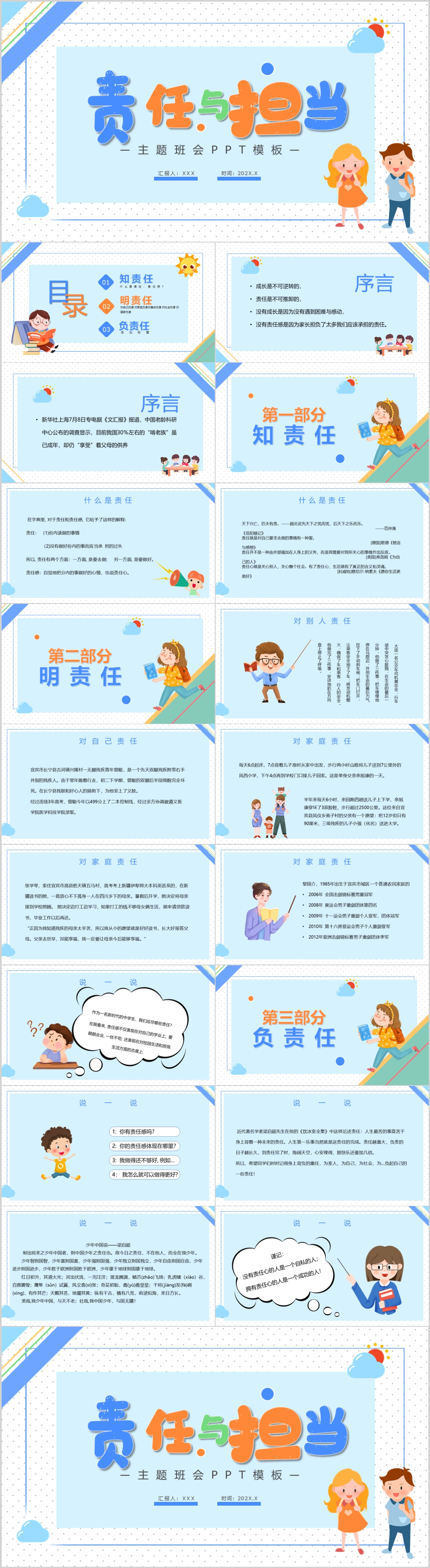 卡通校园中小学生责任与担当个人责任感知识培训课件ppt模板