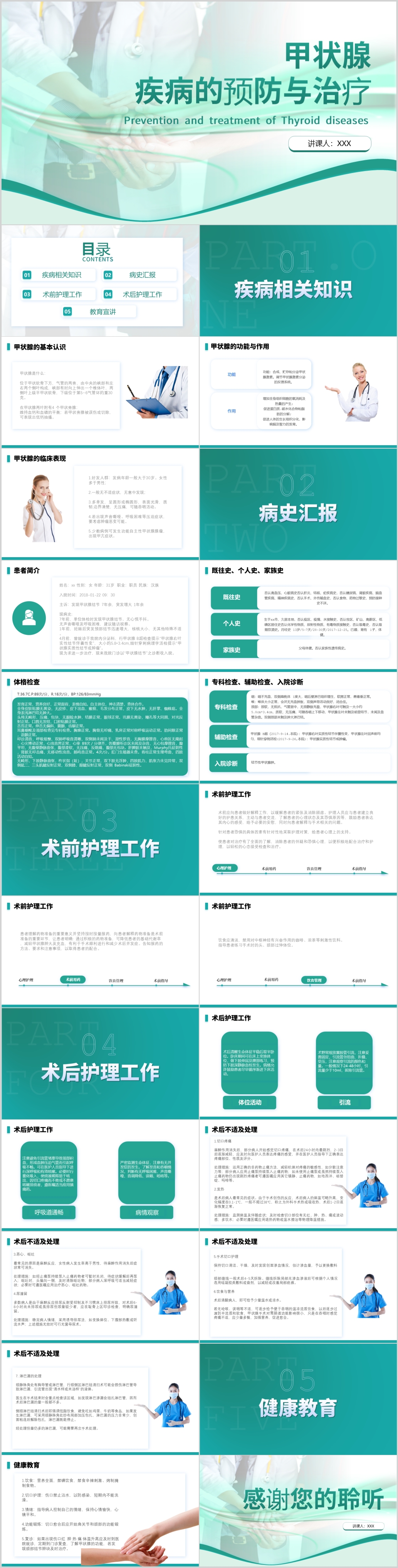 简约医疗医院甲状腺疾病的预防与治疗护理工作ppt模板