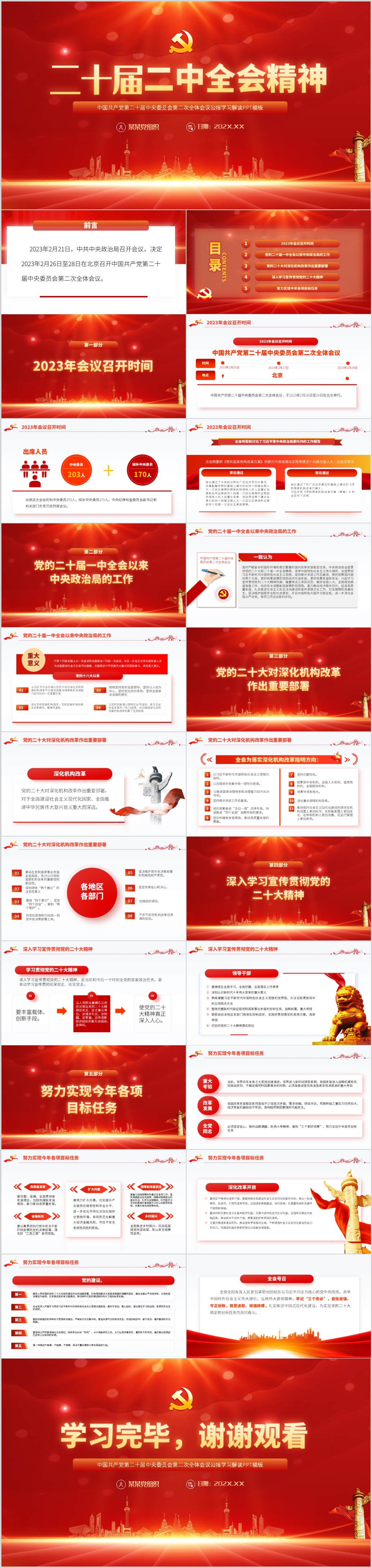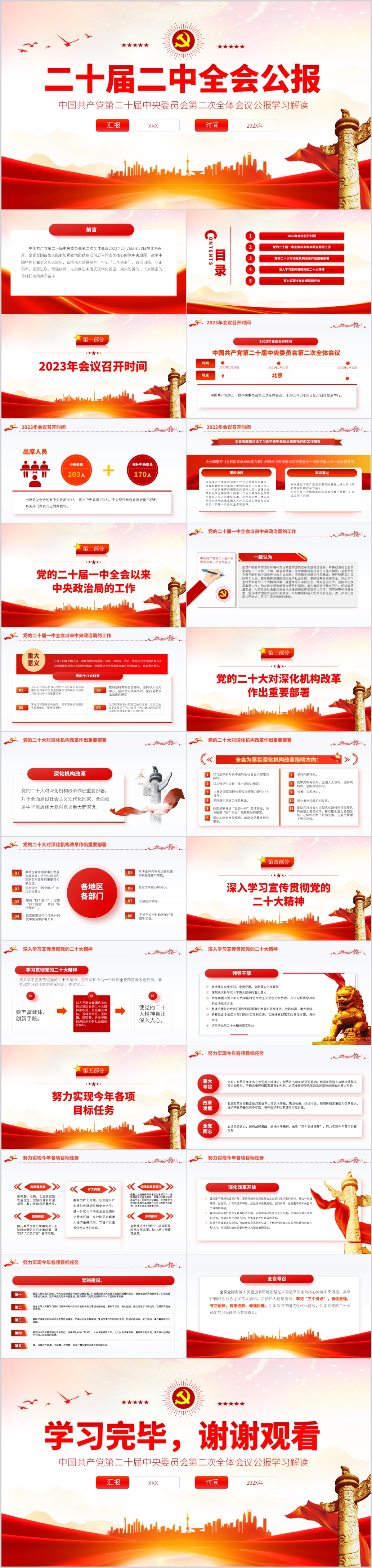 2023年第二十届二中全会公报学习解读ppt模板(内含WORD演讲稿)