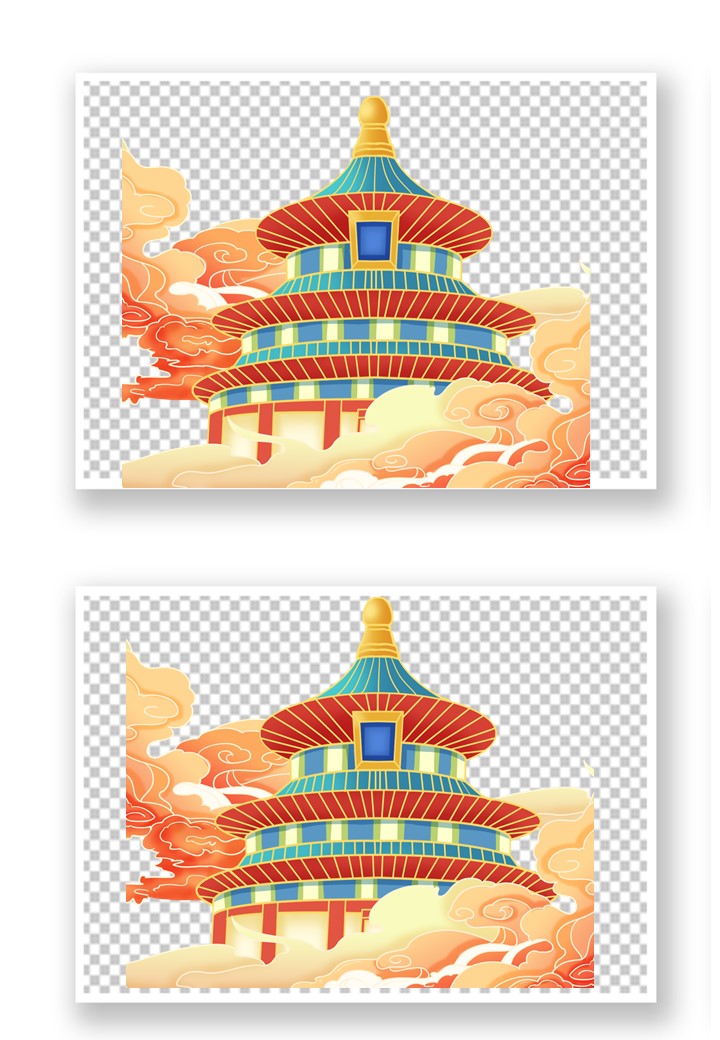 国潮秋天夕阳山水景色中国风PNG元素设计PPT素材插画