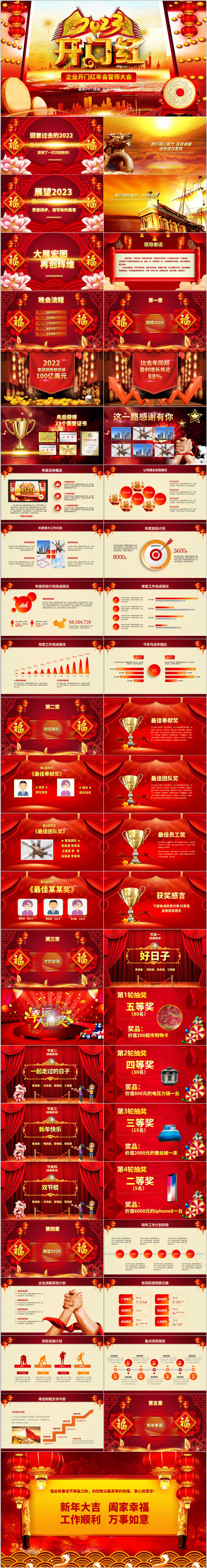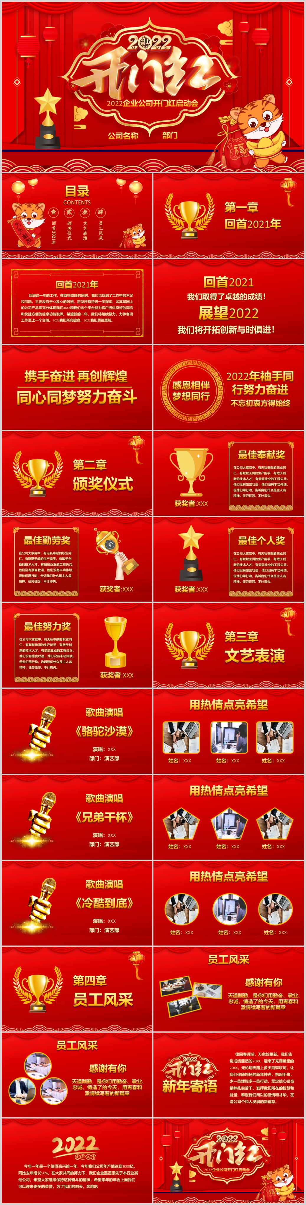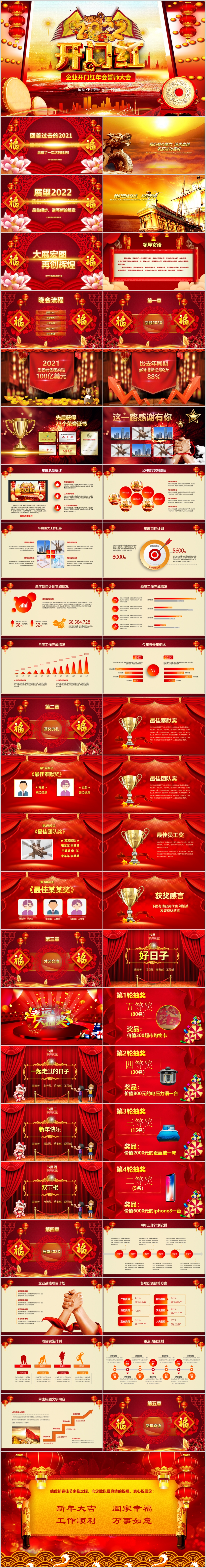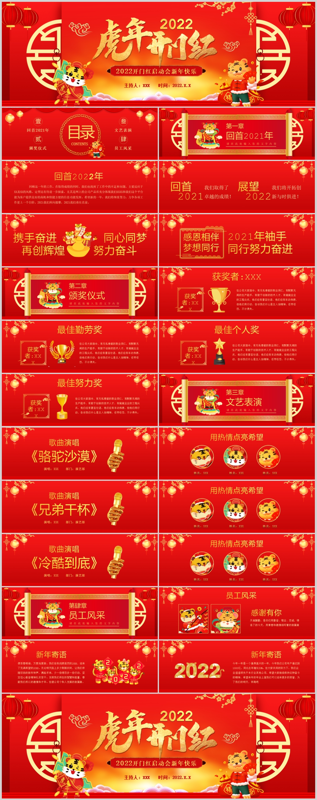 2022红色喜庆开门红虎年颁奖表彰春节晚会誓师大会ppt模板