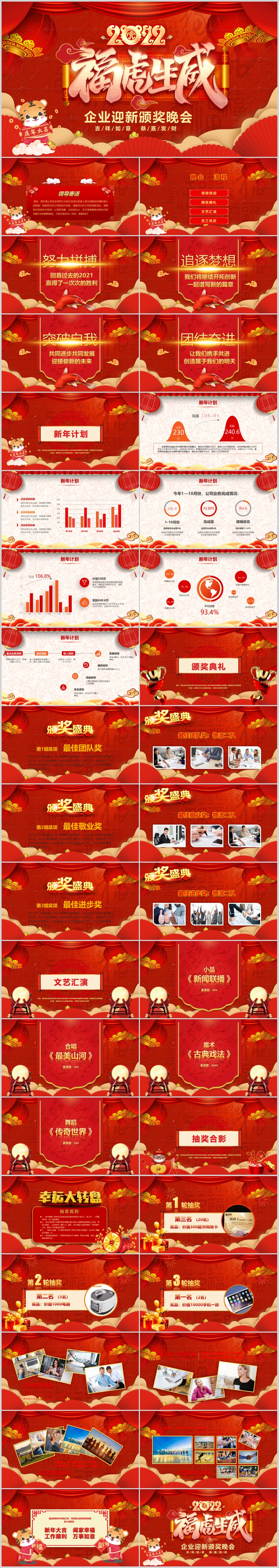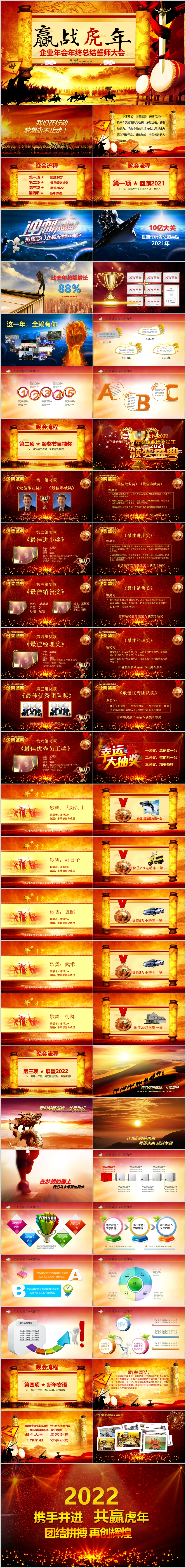 2022企业科技互联网赢战虎年年会颁奖表彰新年春节晚会ppt模板
