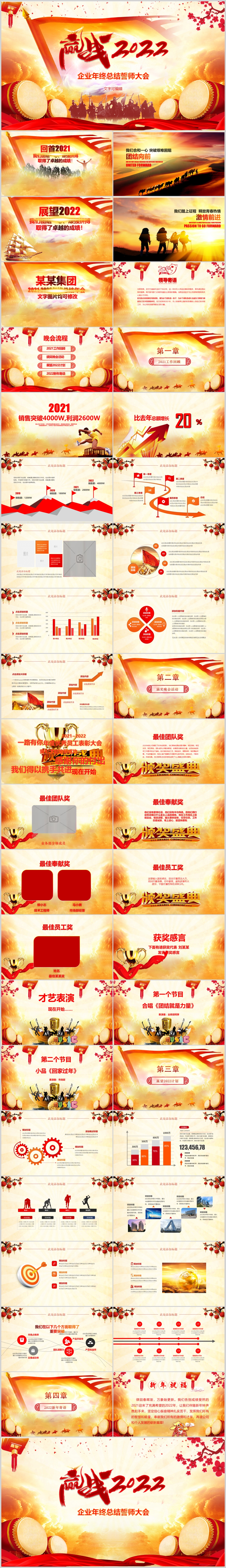 赢战2022中国风精美年终总结企业年会颁奖表彰晚会PPT模板