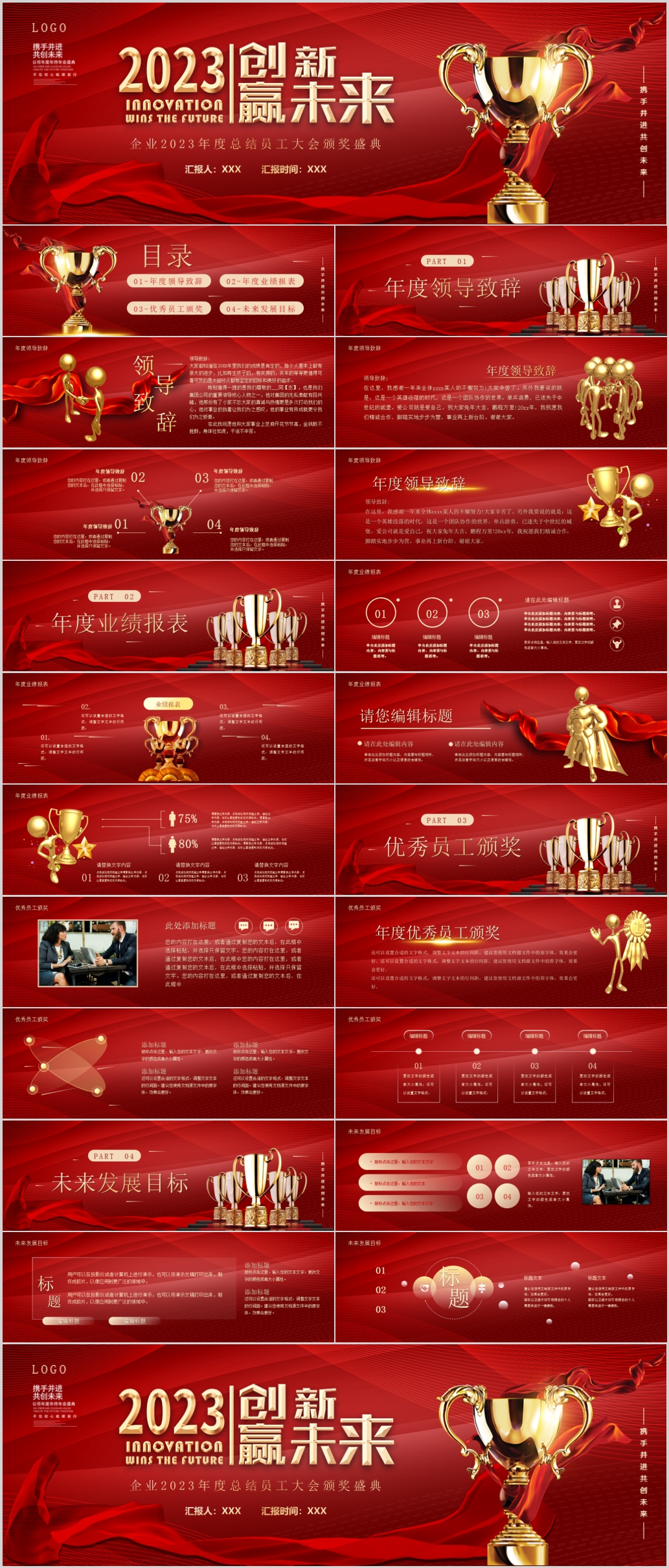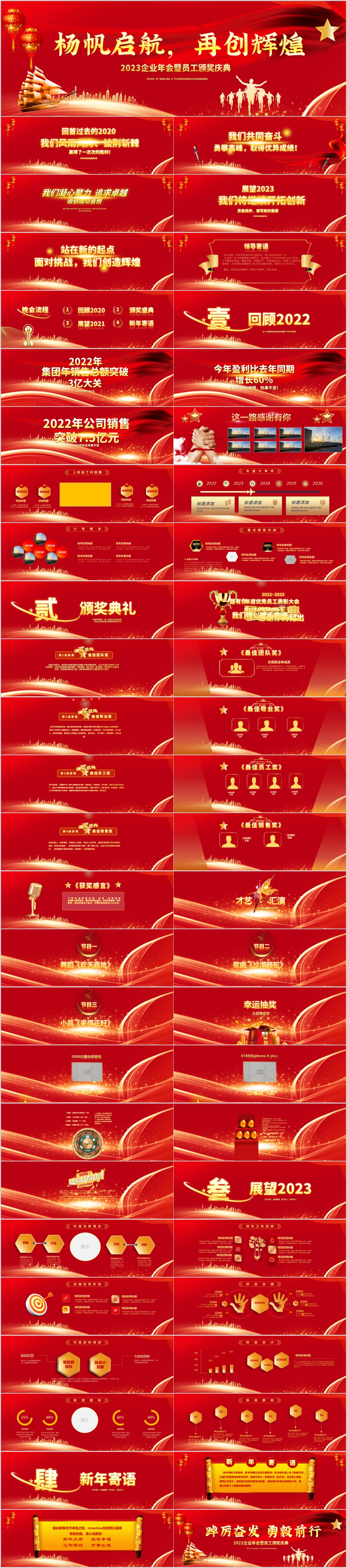 赢战2023年终总结企业年会颁奖表彰誓师大会ppt模板