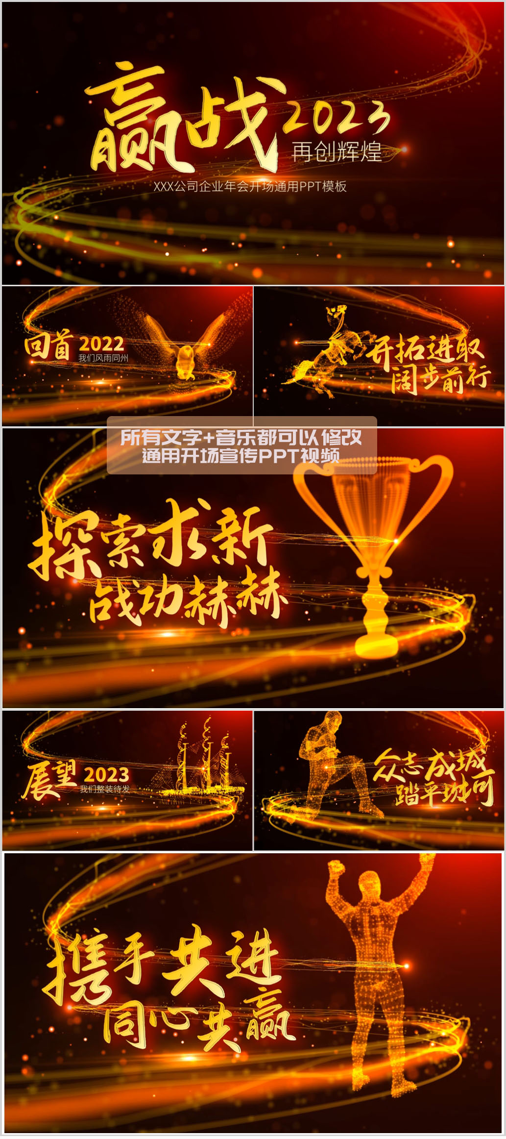 2023年企业年会宣传开场视频片头誓师大会ppt模板