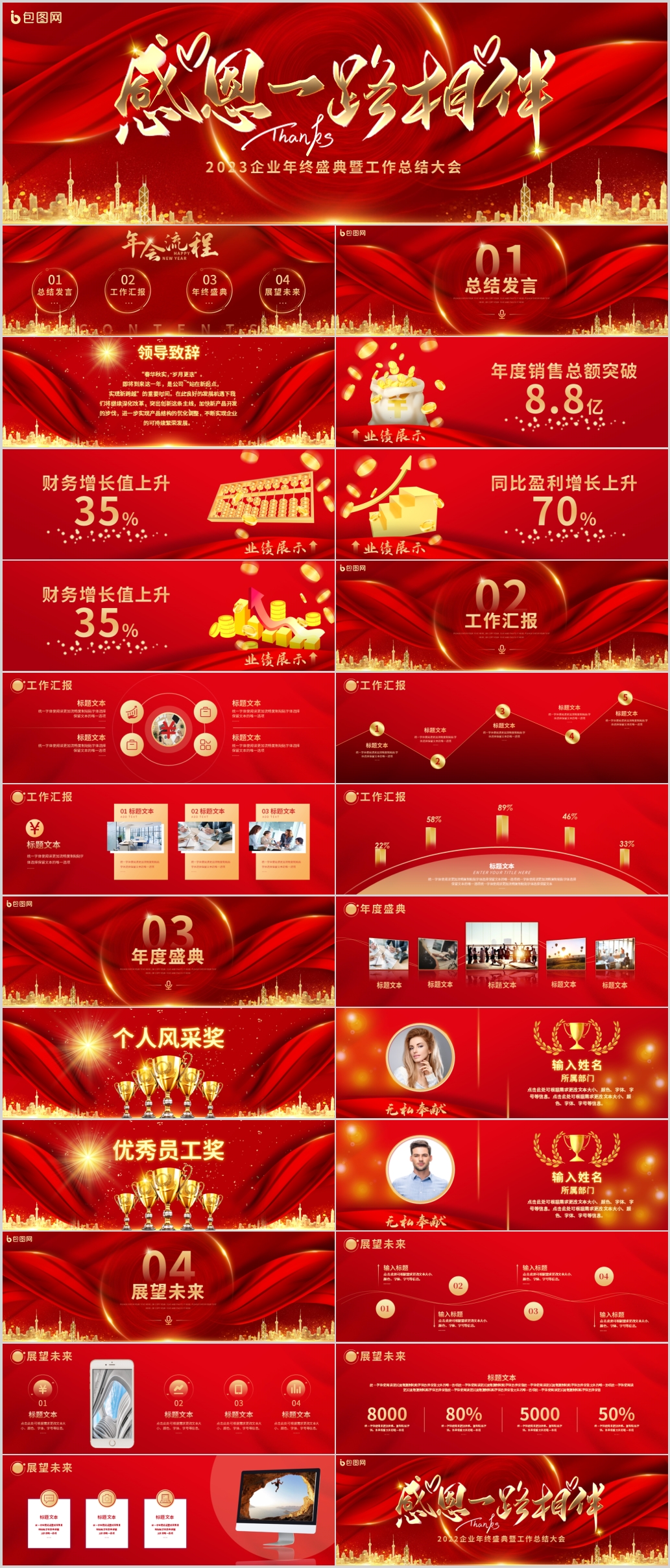 2023红色宽屏喜庆感谢一路有您相伴企业年会颁奖晚会ppt模板