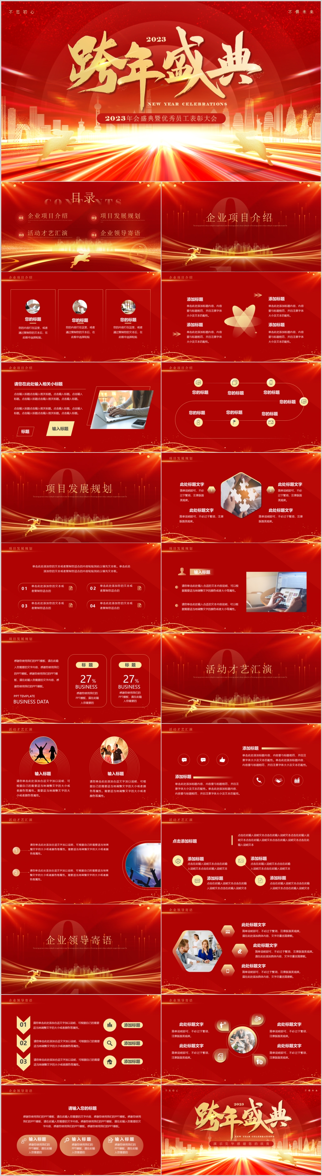 红色2023跨年企业年会颁奖年终表彰大会ppt模板