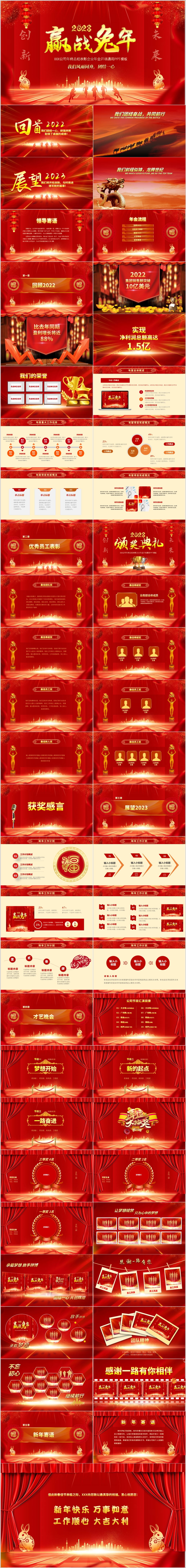 赢战兔年2023新年春节企业年会颁奖晚会ppt模板