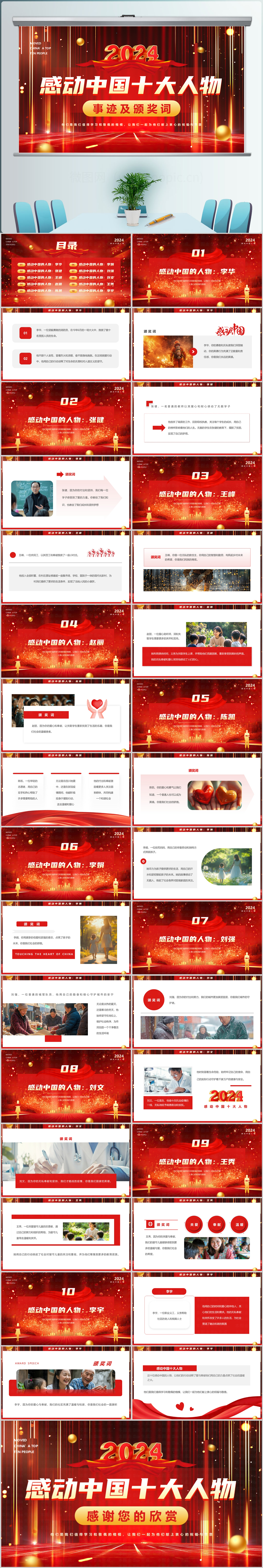 2024红色感动中国十大人物事迹及颁奖晚会ppt模板
