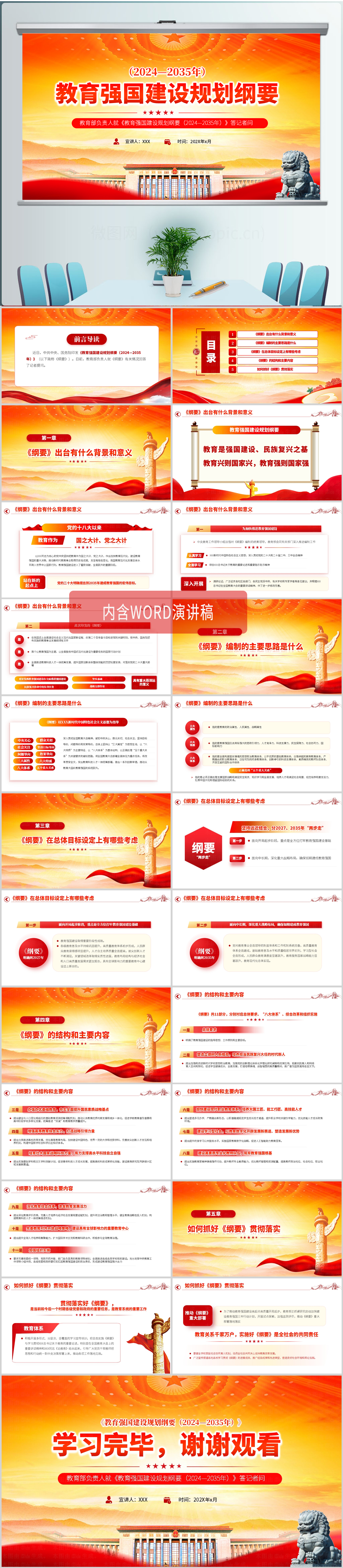 学习教育强国建设规划纲要(2024—2035年)ppt模板(内含WORD演讲稿)