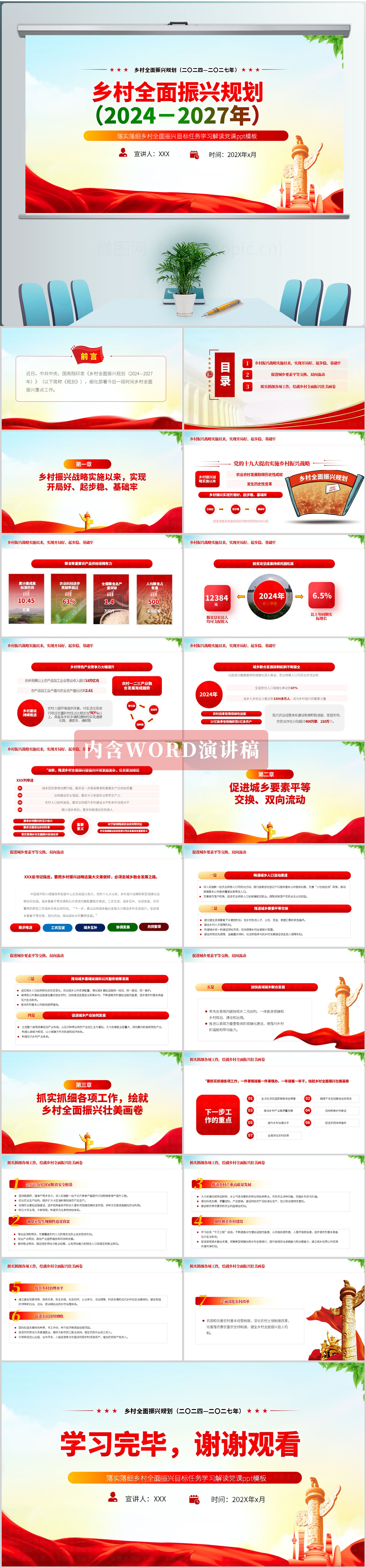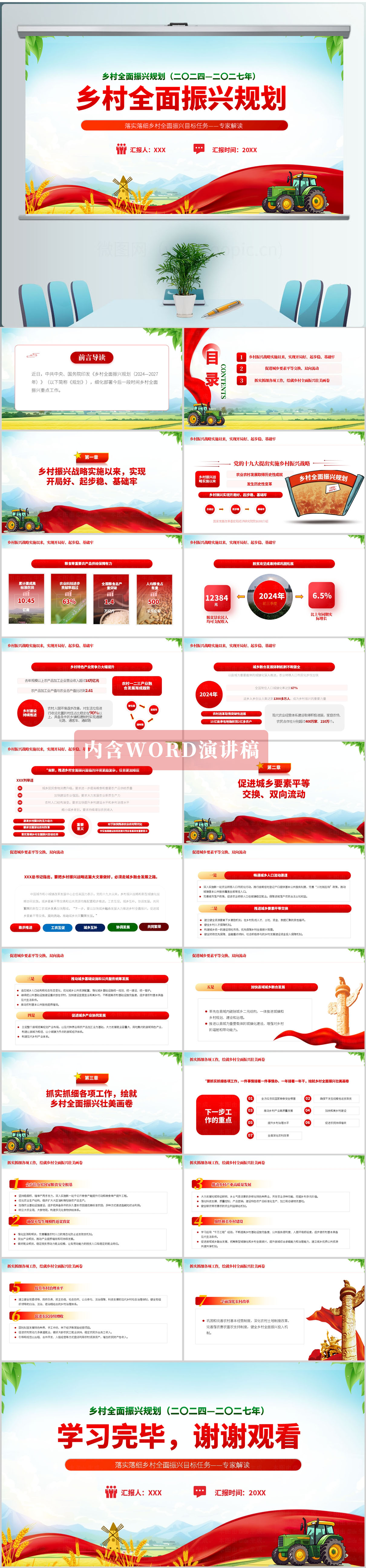 《乡村全面振兴规划(二〇二四—二〇二七年)》学习解读ppt模板(内含WORD演