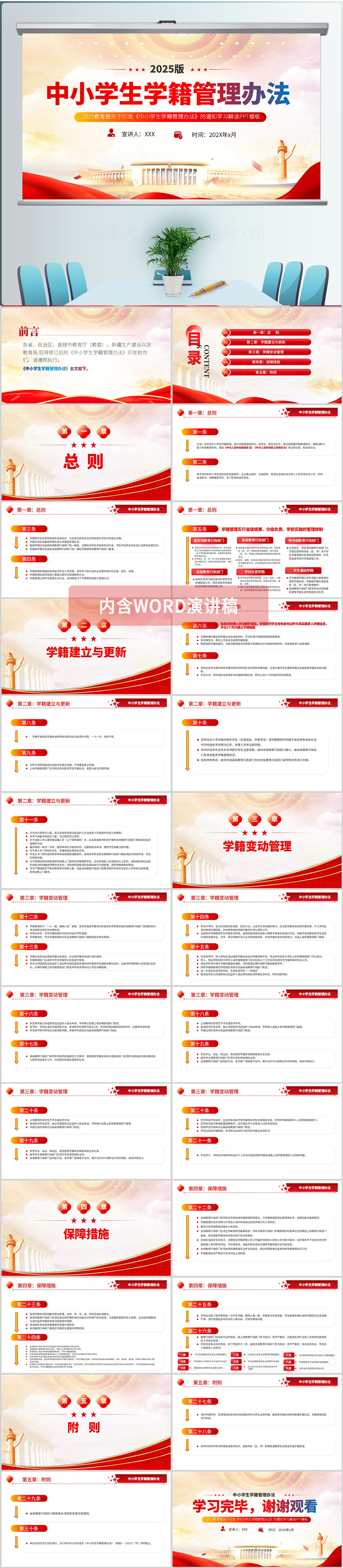 新修订《中小学生学籍管理办法》学习解读ppt模板(内含WORD演讲稿)