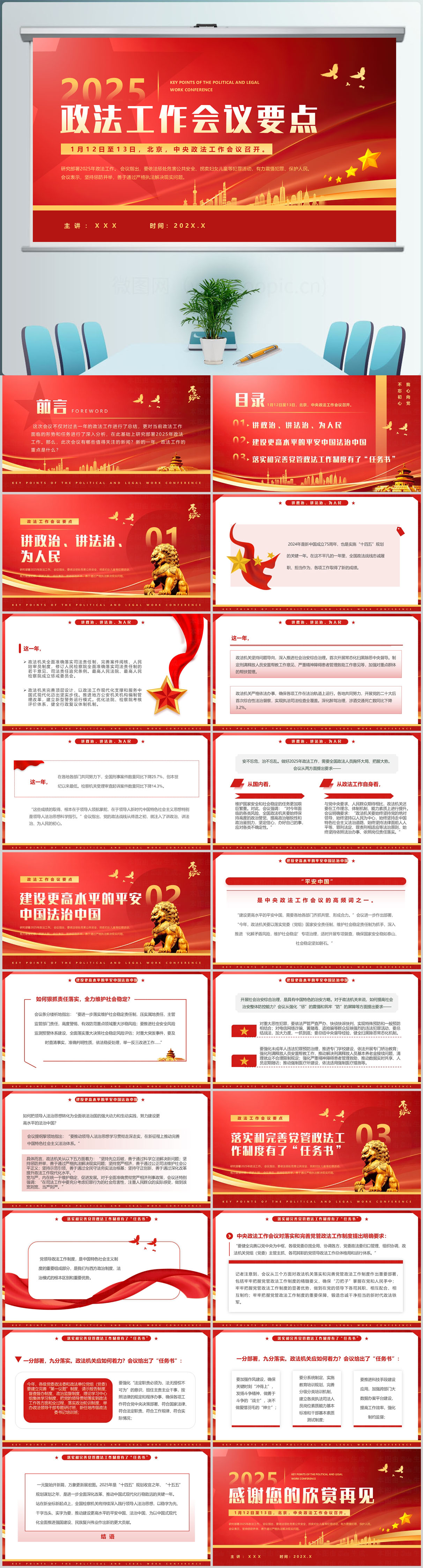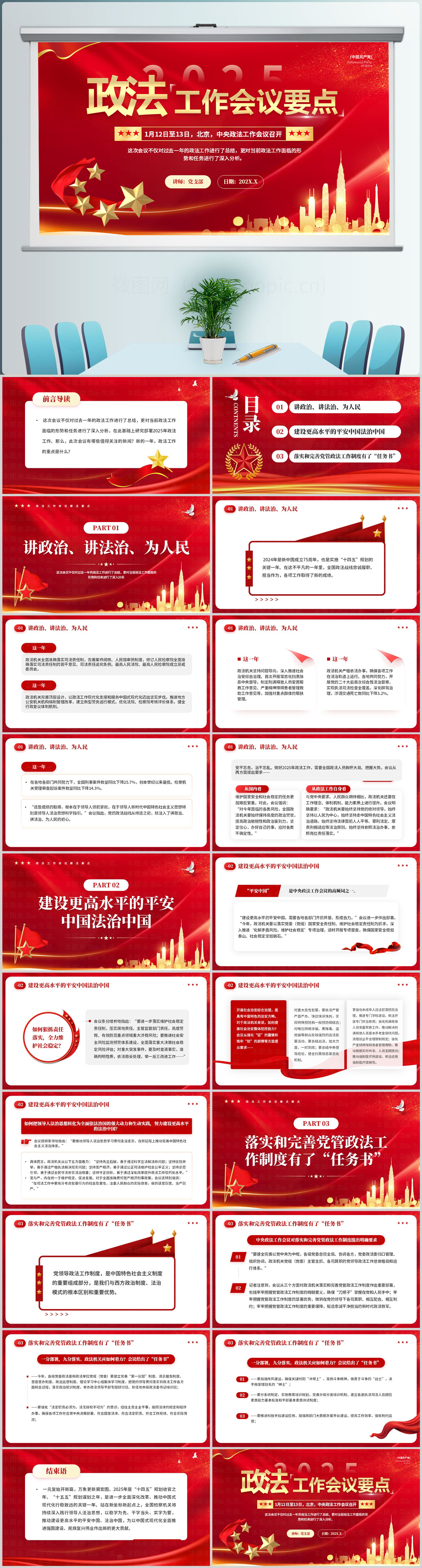 红色2025中央政法工作会议要点PPT模版设计《含WORD文件》