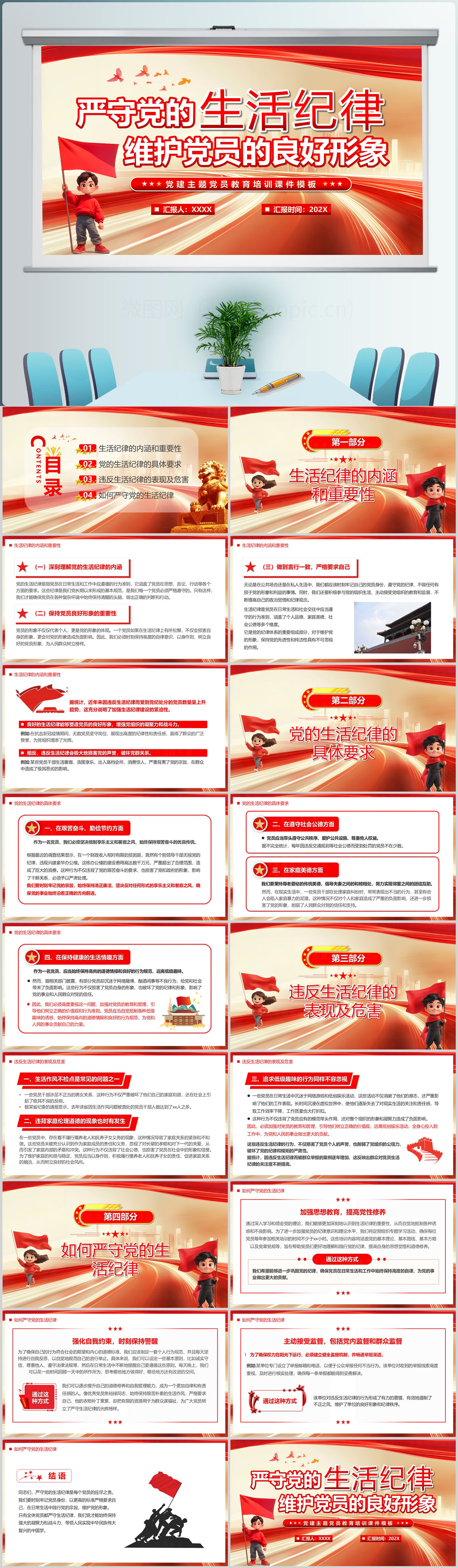 严守党的生活纪律维护党员良好形象PPT模板设计