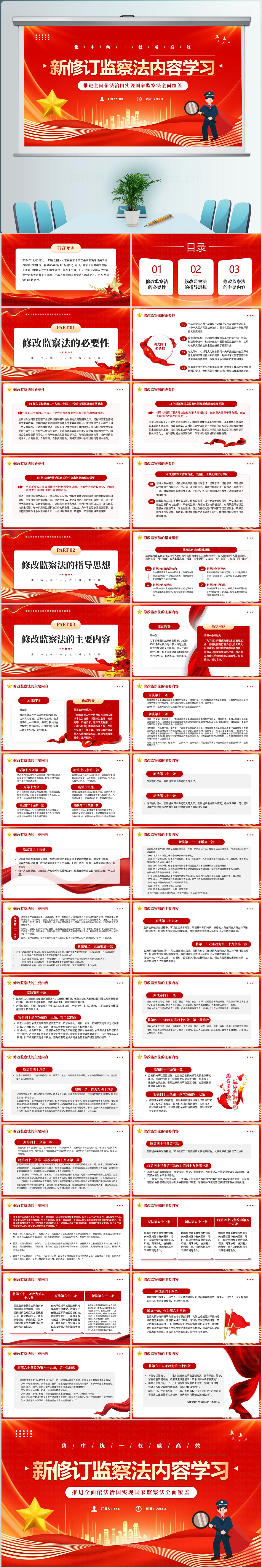 红色2025年修改中华人民共和国监察法ppt模版设计