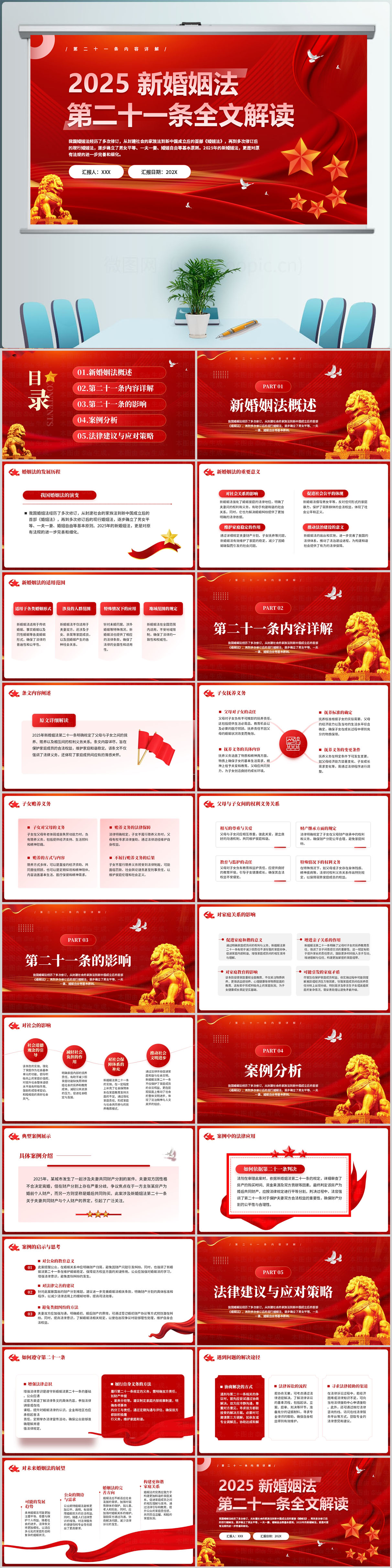 红色2025新婚姻法第二十一条全文解读PPT模版设计
