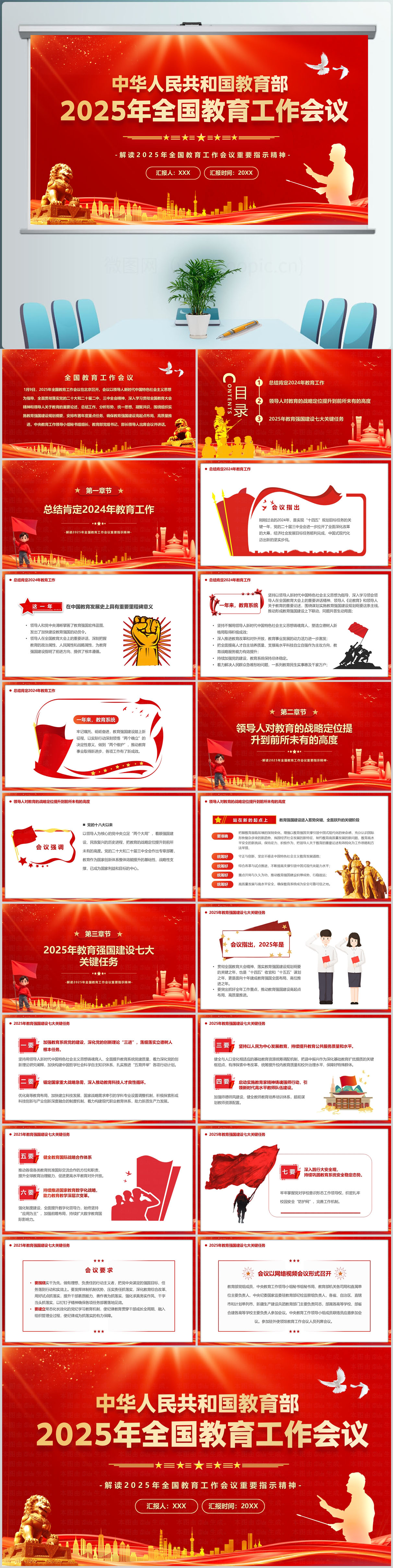 2025年全国教育工作会议精神党课党建ppt模板设计
